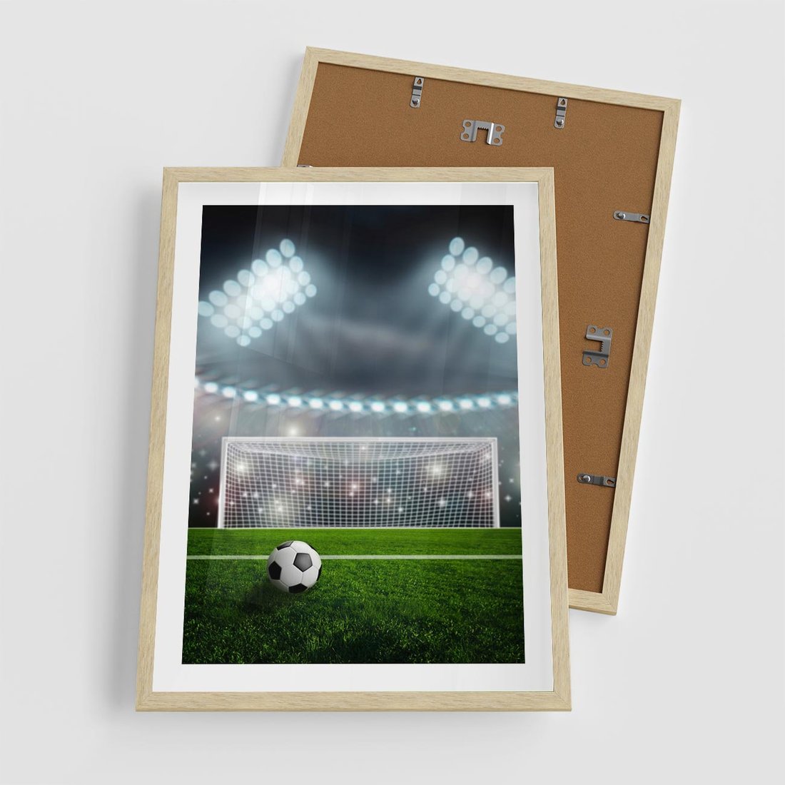 Plakat w ramie 50x70 - Strzał do bramki - piłka, nożna - rama drewno