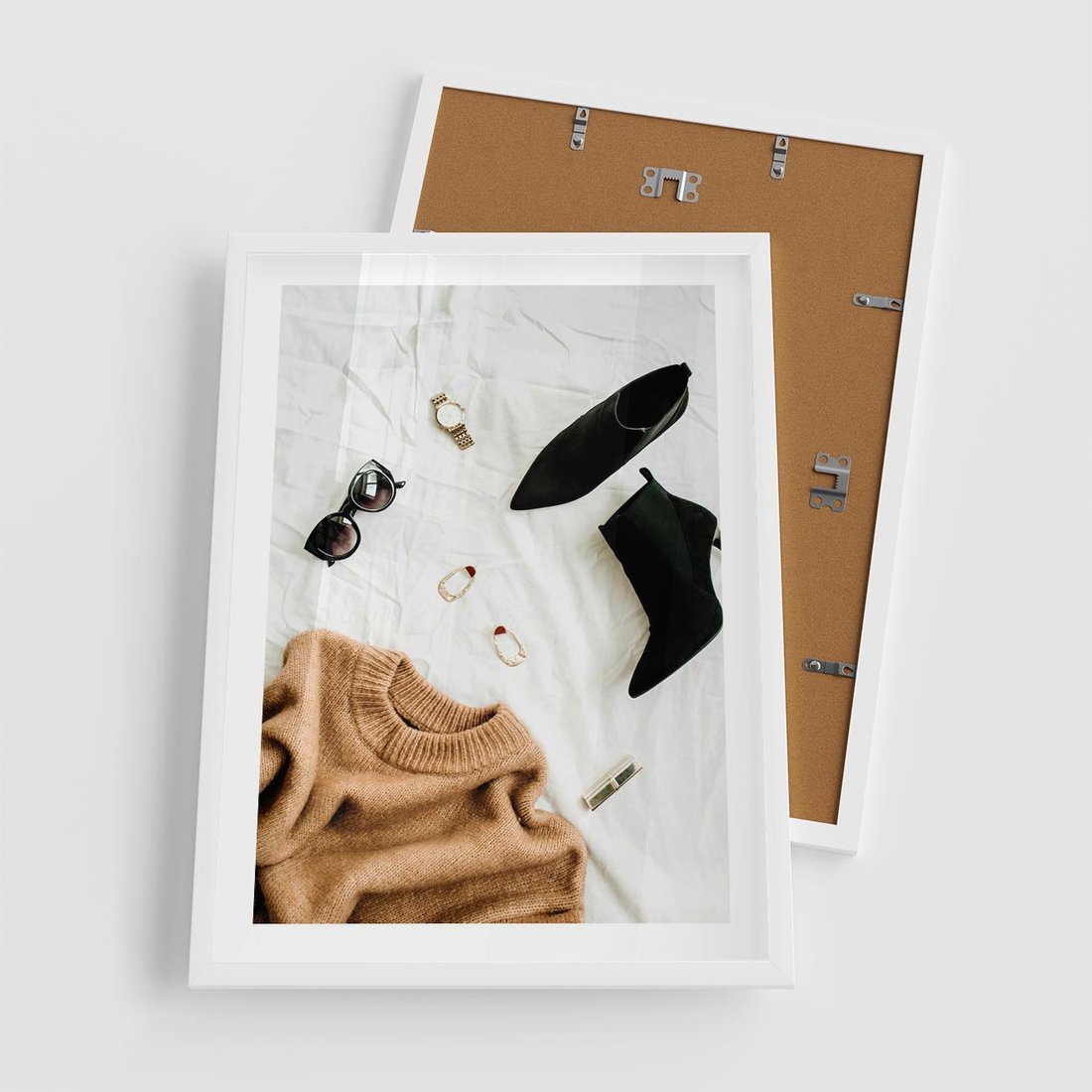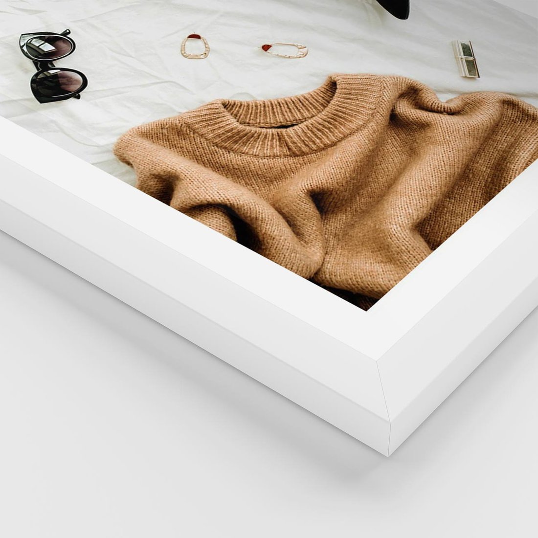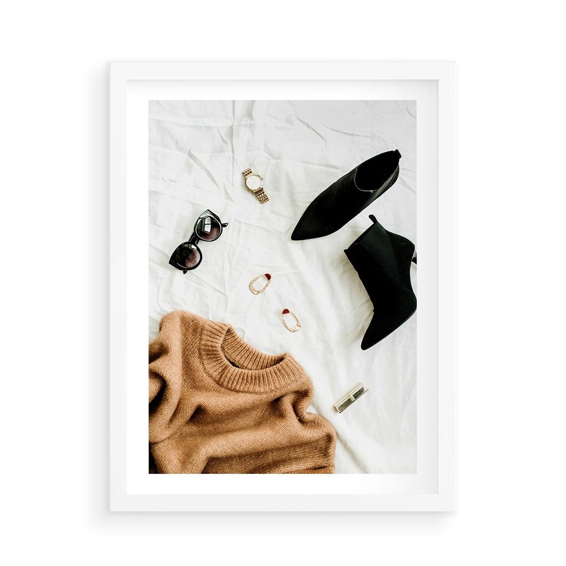 Plakat w ramie 50x70 - Styl i Klasyka - modowa fotografia, sweter - rama biała