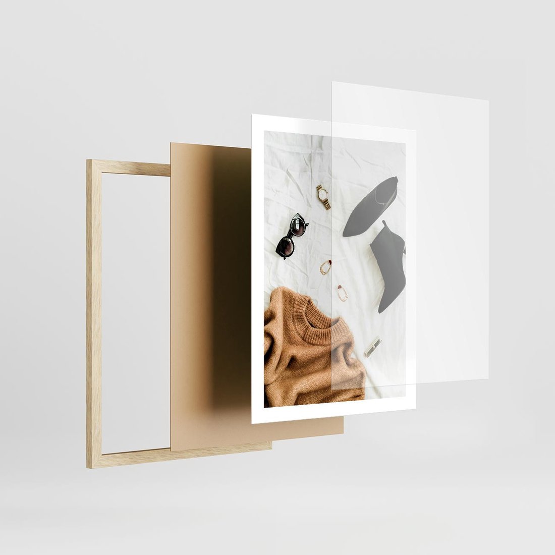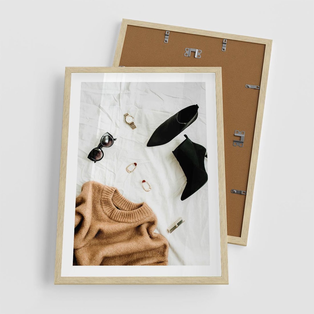 Plakat w ramie 50x70 - Styl i Klasyka - modowa fotografia, sweter - rama drewno