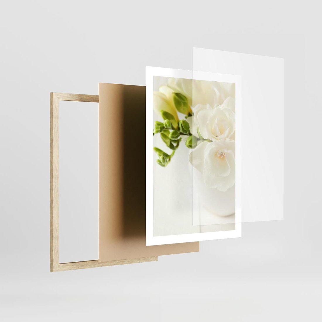 - Plakat w ramie 50x70 - Subtelność białych frezji
