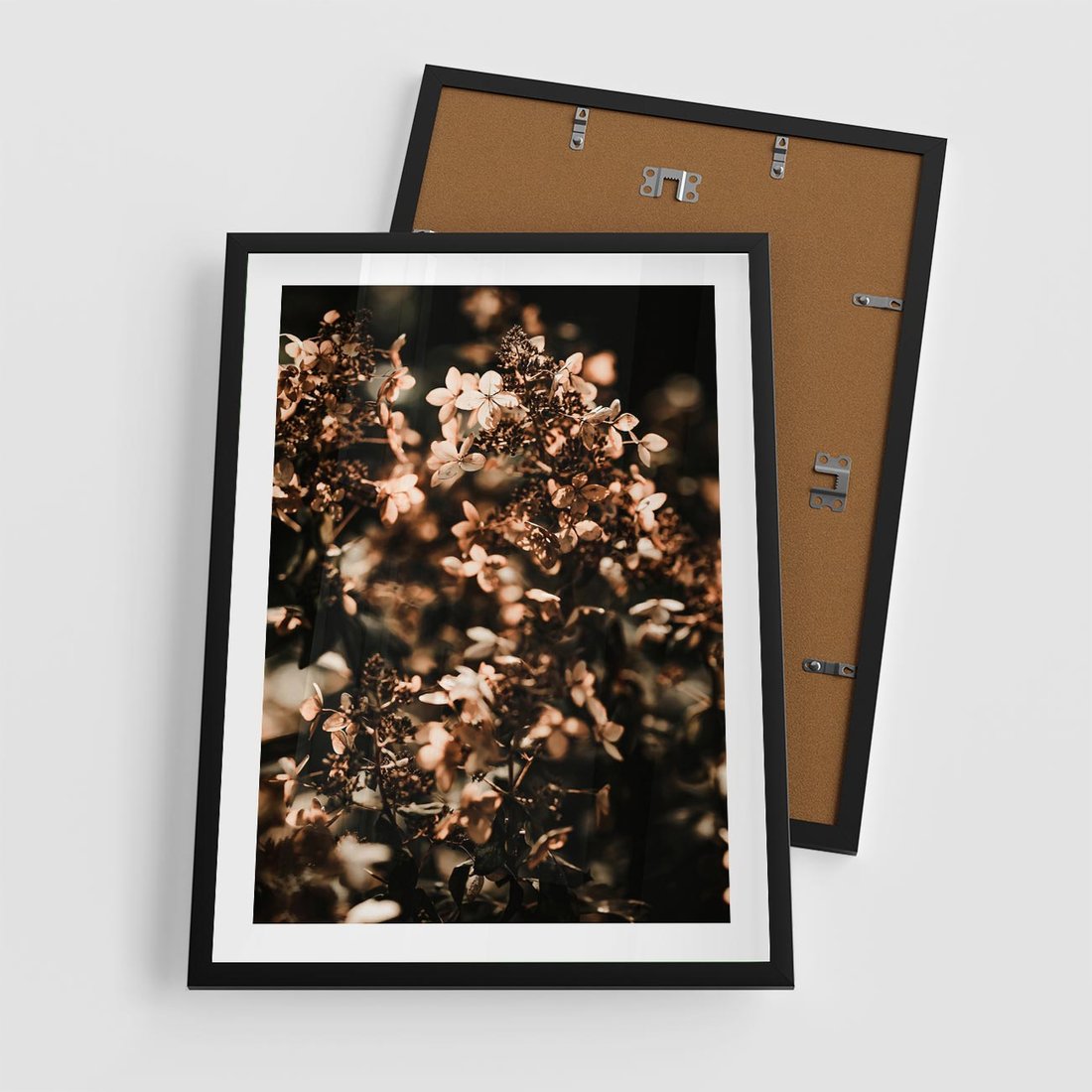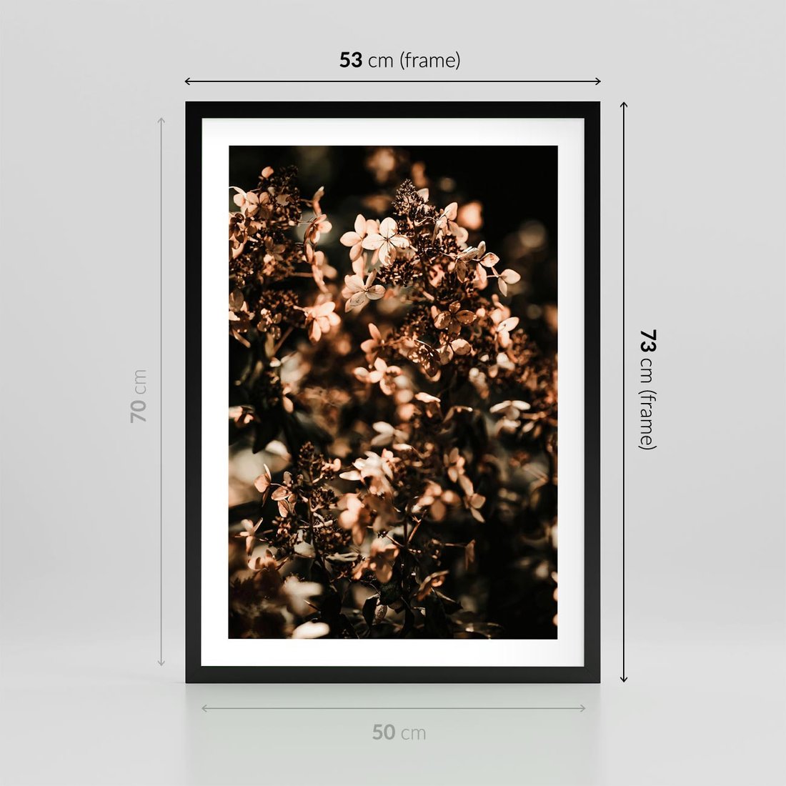 Plakat w ramie 50x70 - Sucha Kompozycja Kwiatów - suche kwiaty hortensji - rama czarna