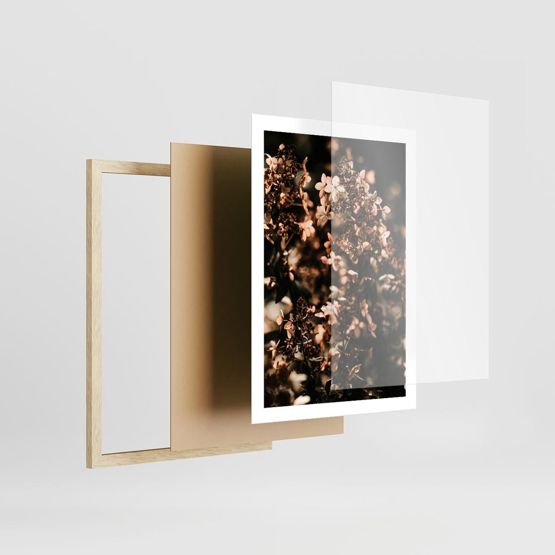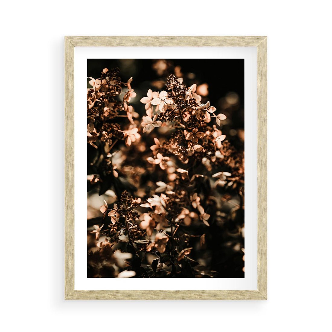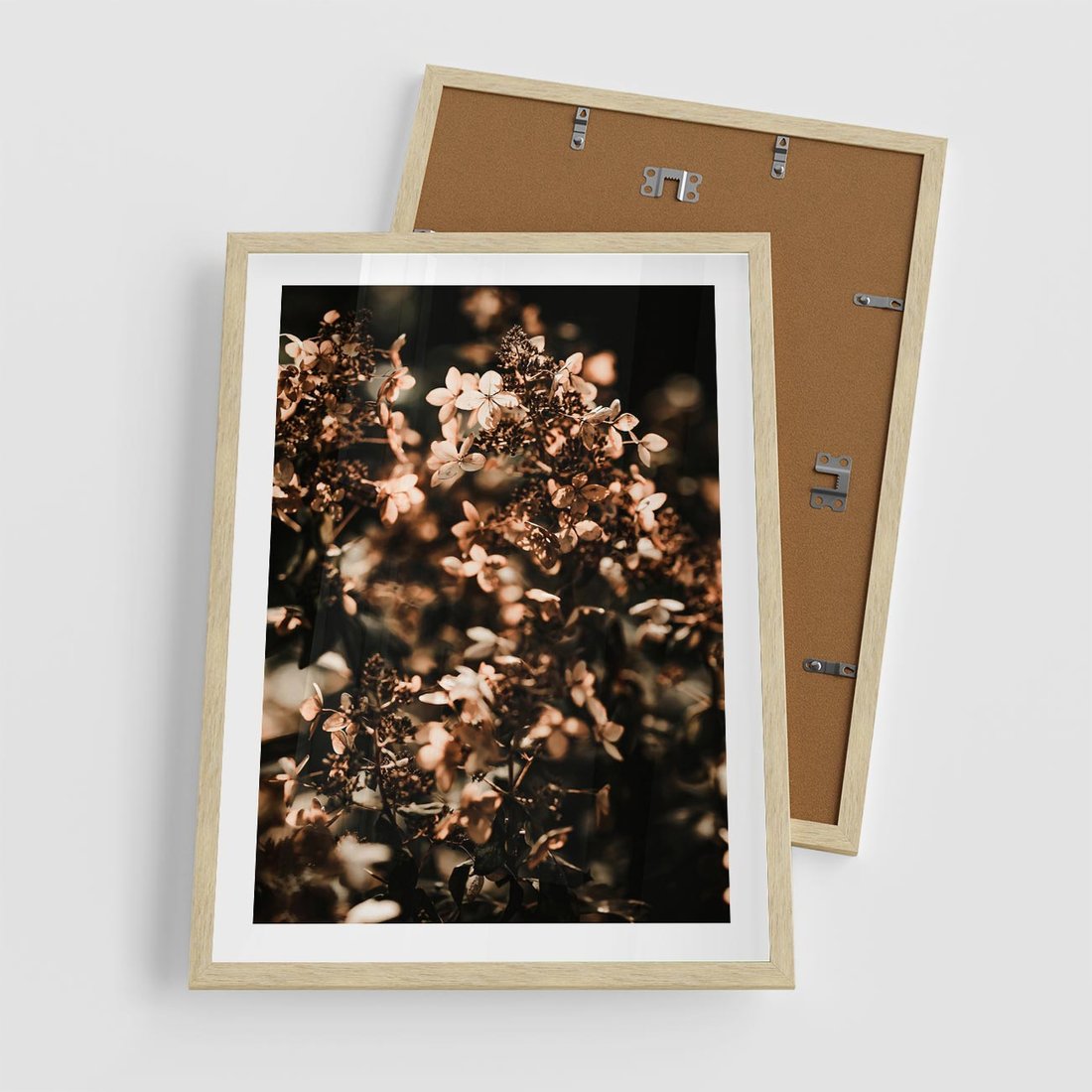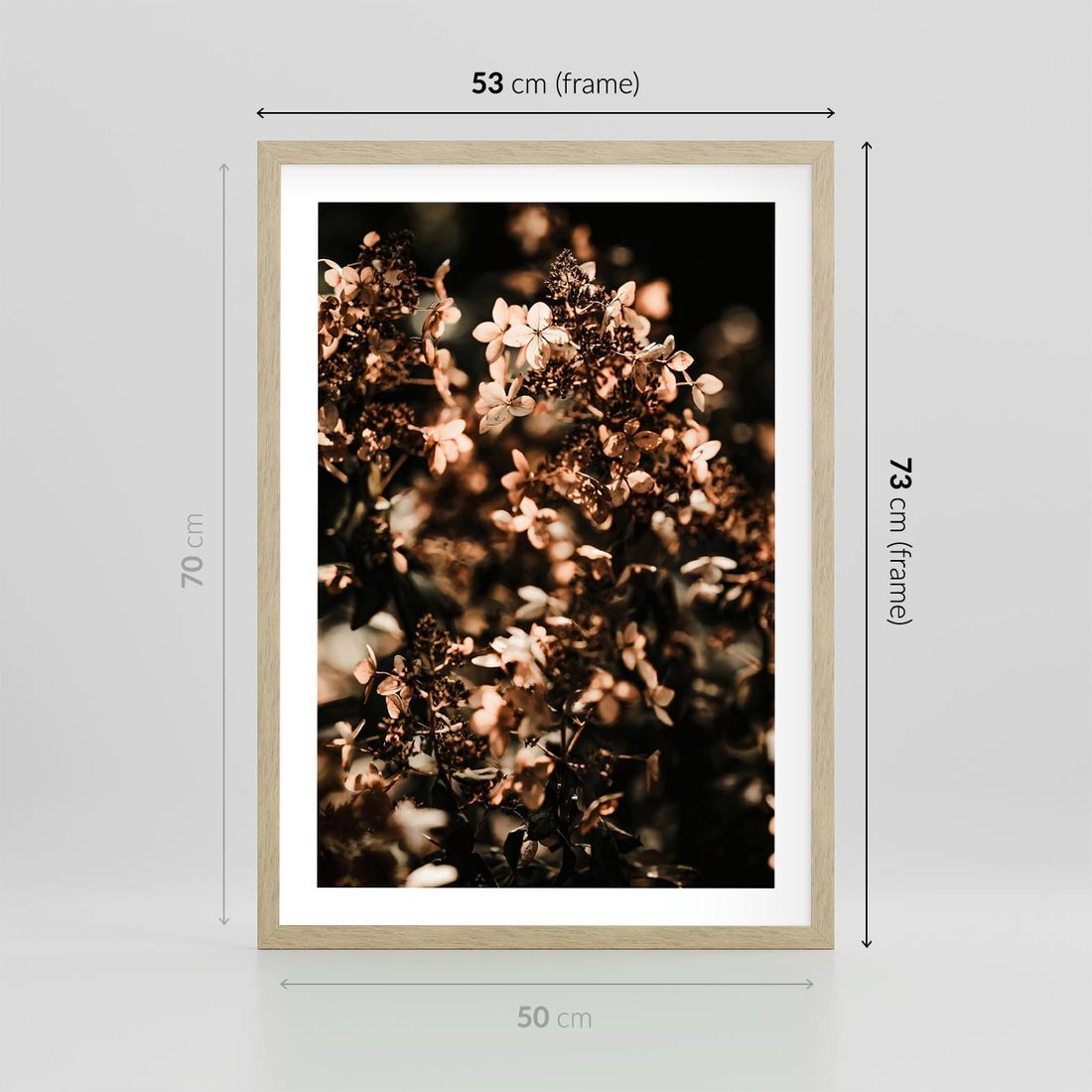 Plakat w ramie 50x70 - Sucha Kompozycja Kwiatów - suche kwiaty hortensji - rama drewno