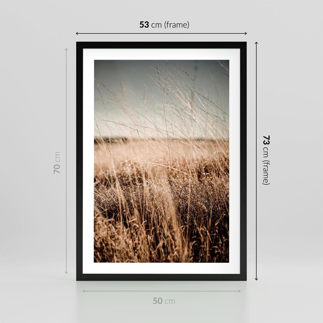 - Plakat w ramie 50x70 - Sucha Trawa w Odcieniach Sepii