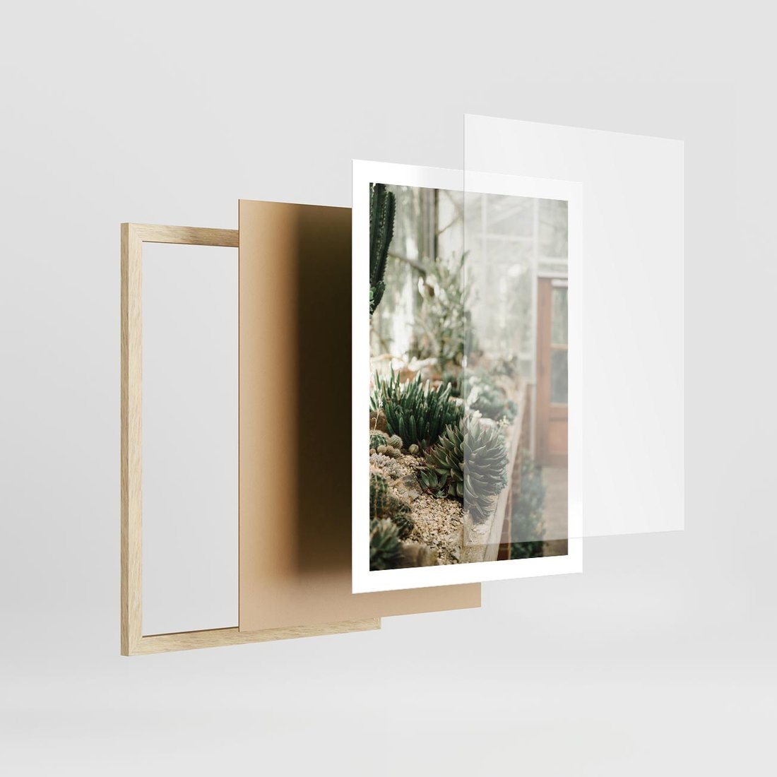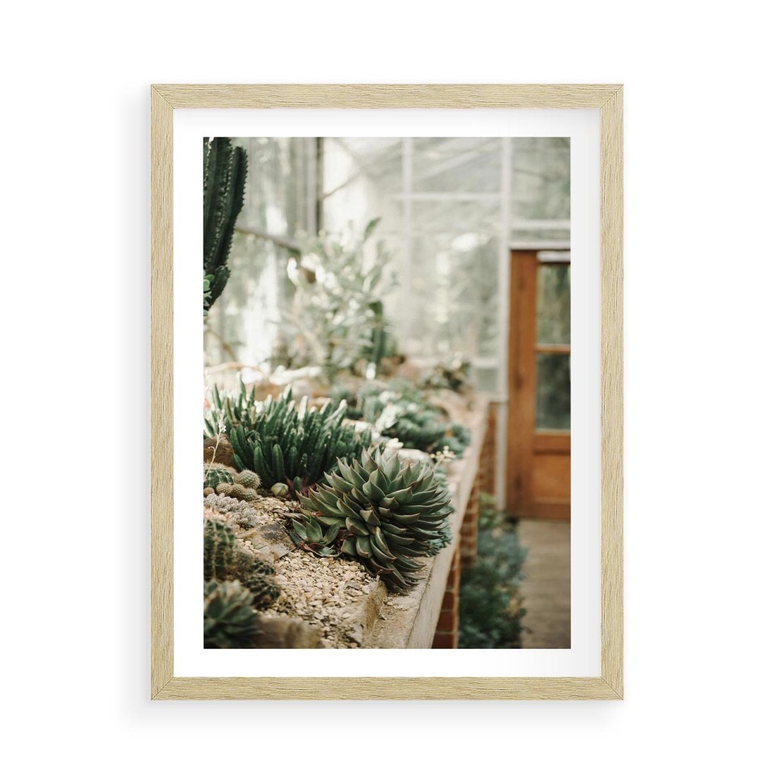 Plakat w ramie 50x70 - Sukulenty w Szklarni - sukulenty, w szklarni - rama drewno