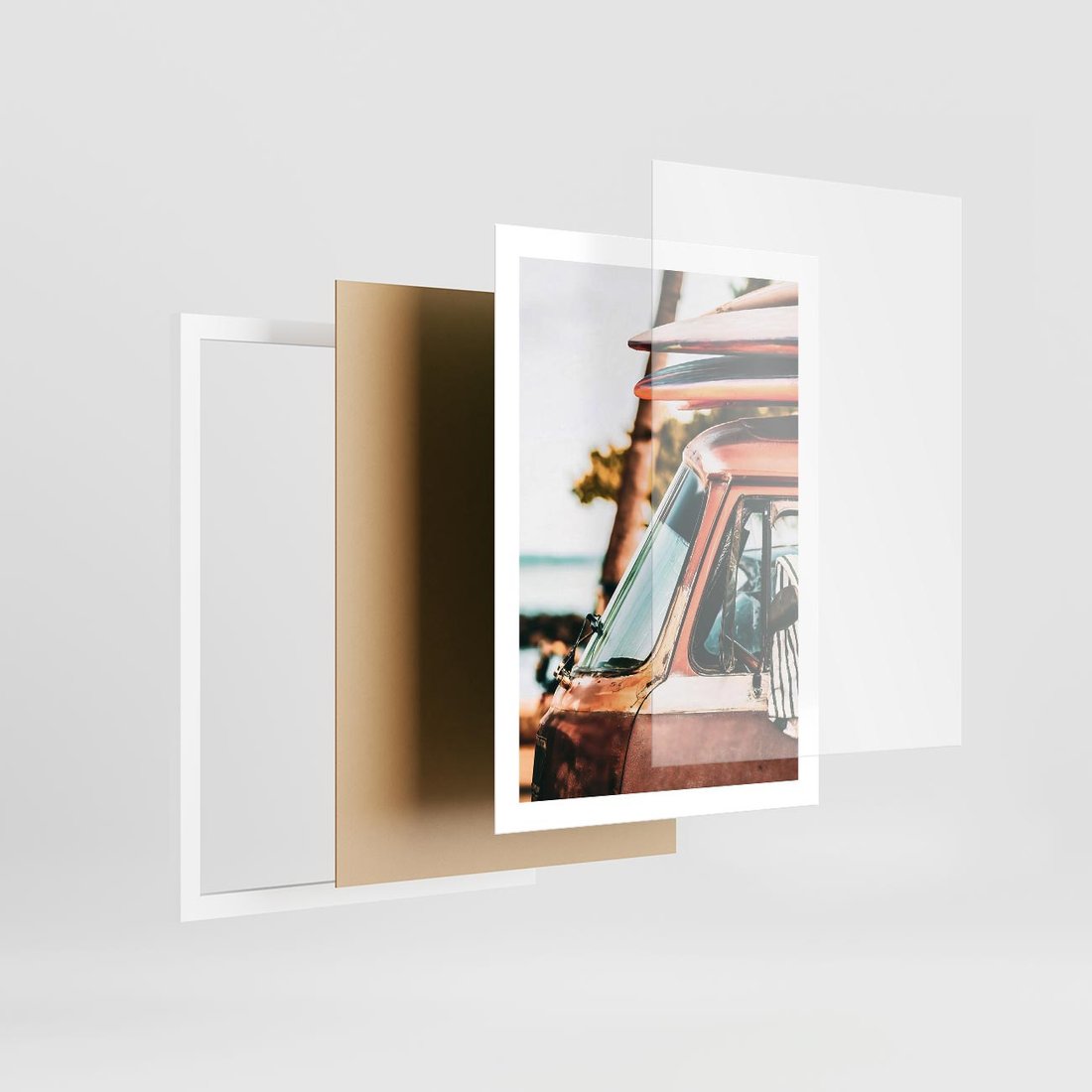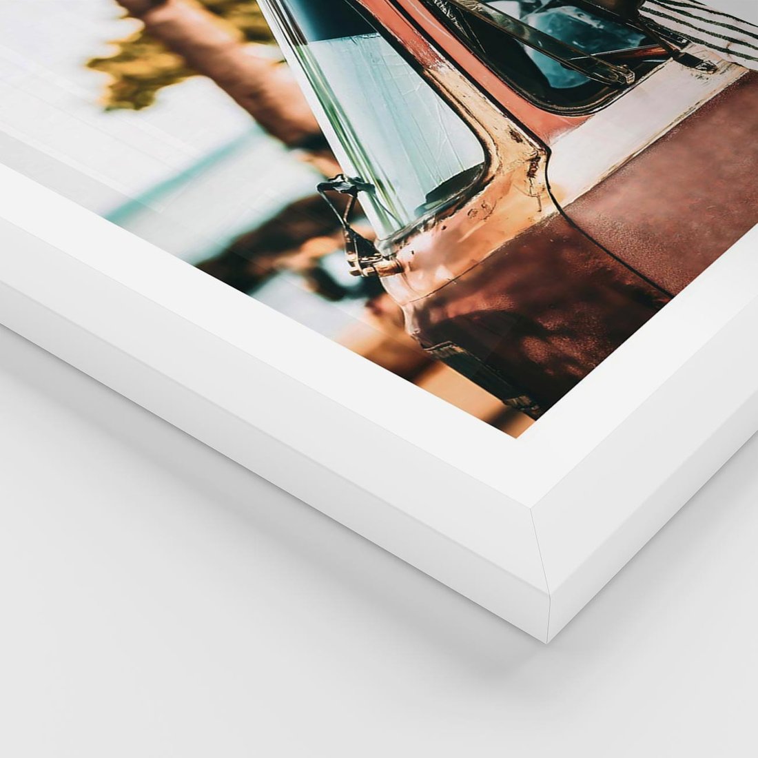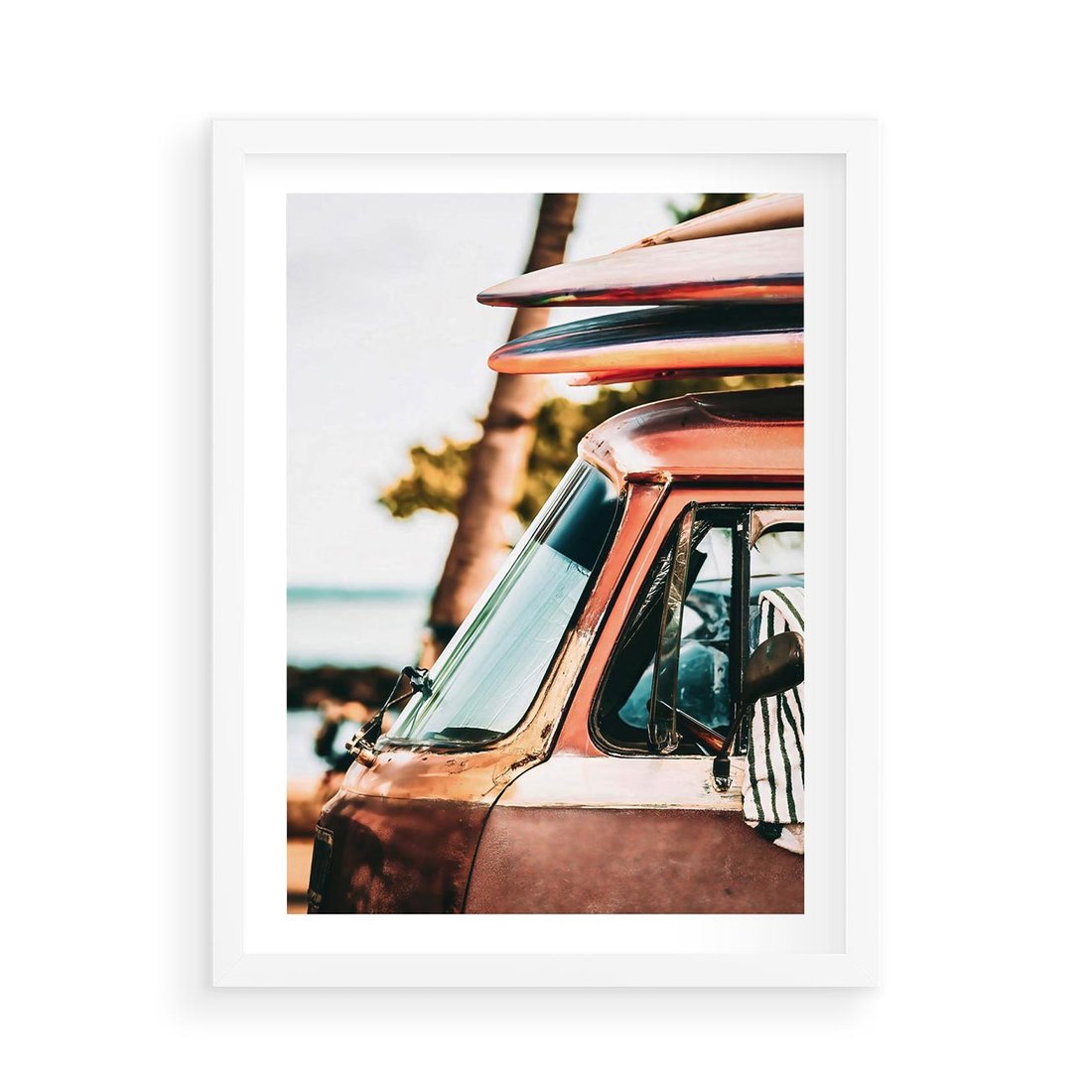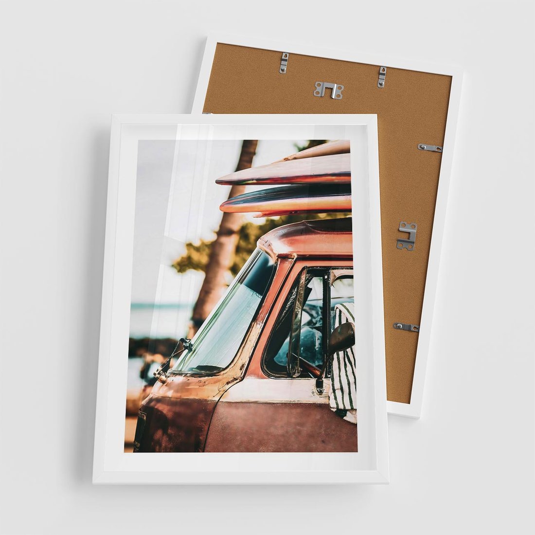 Plakat w ramie 50x70 - Surfingowa Wolność - samochód, stary van - rama biała