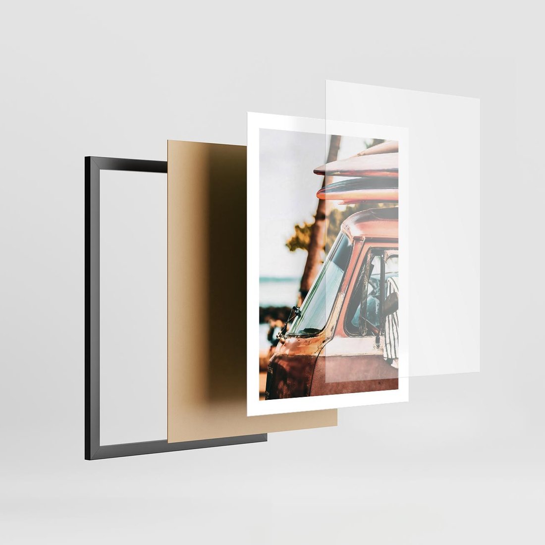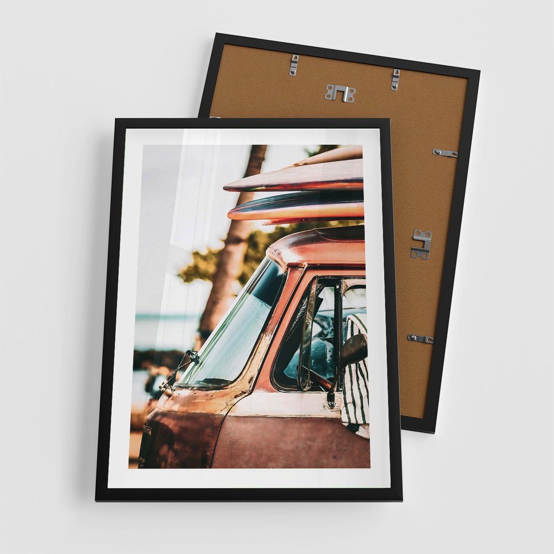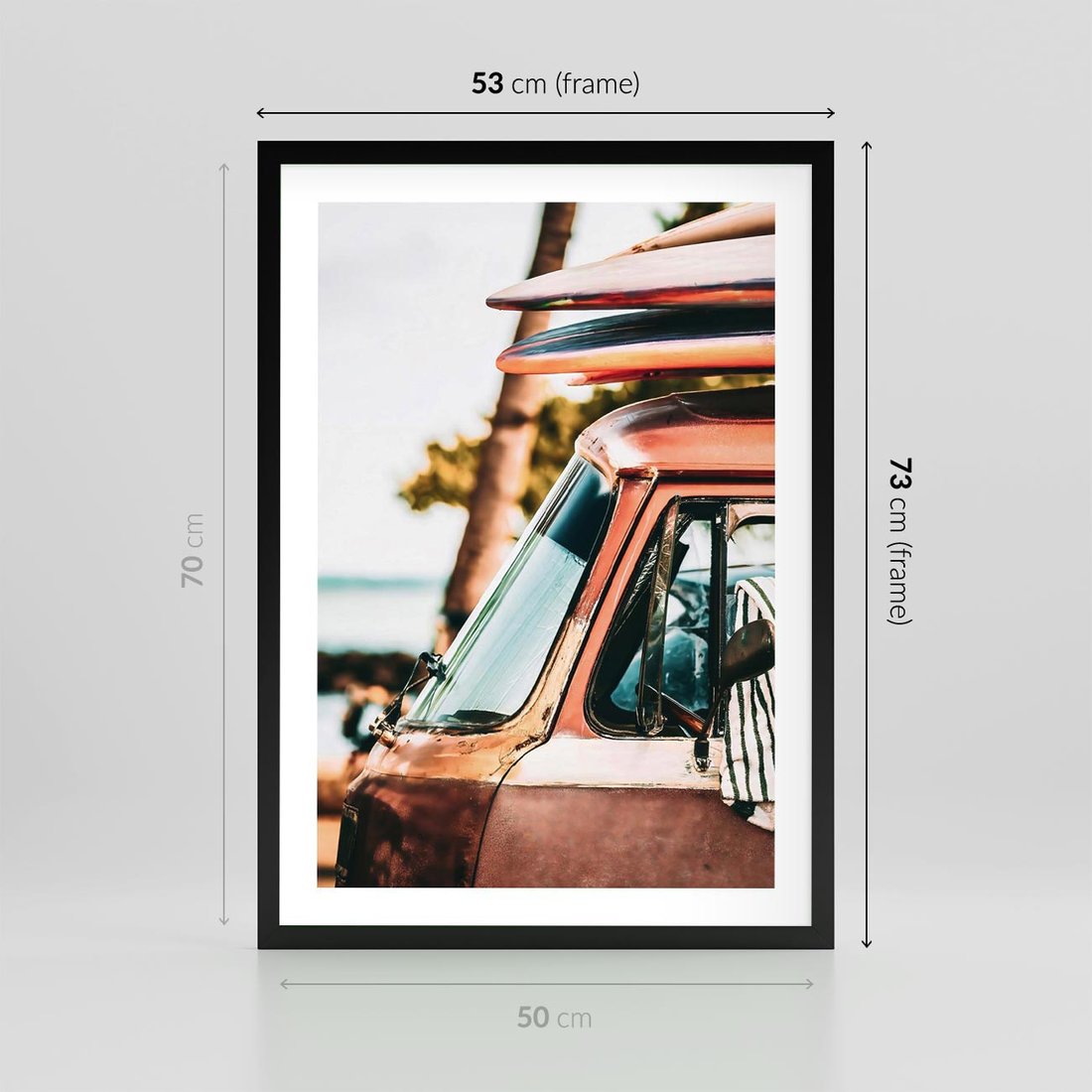 Plakat w ramie 50x70 - Surfingowa Wolność - samochód, stary van - rama czarna