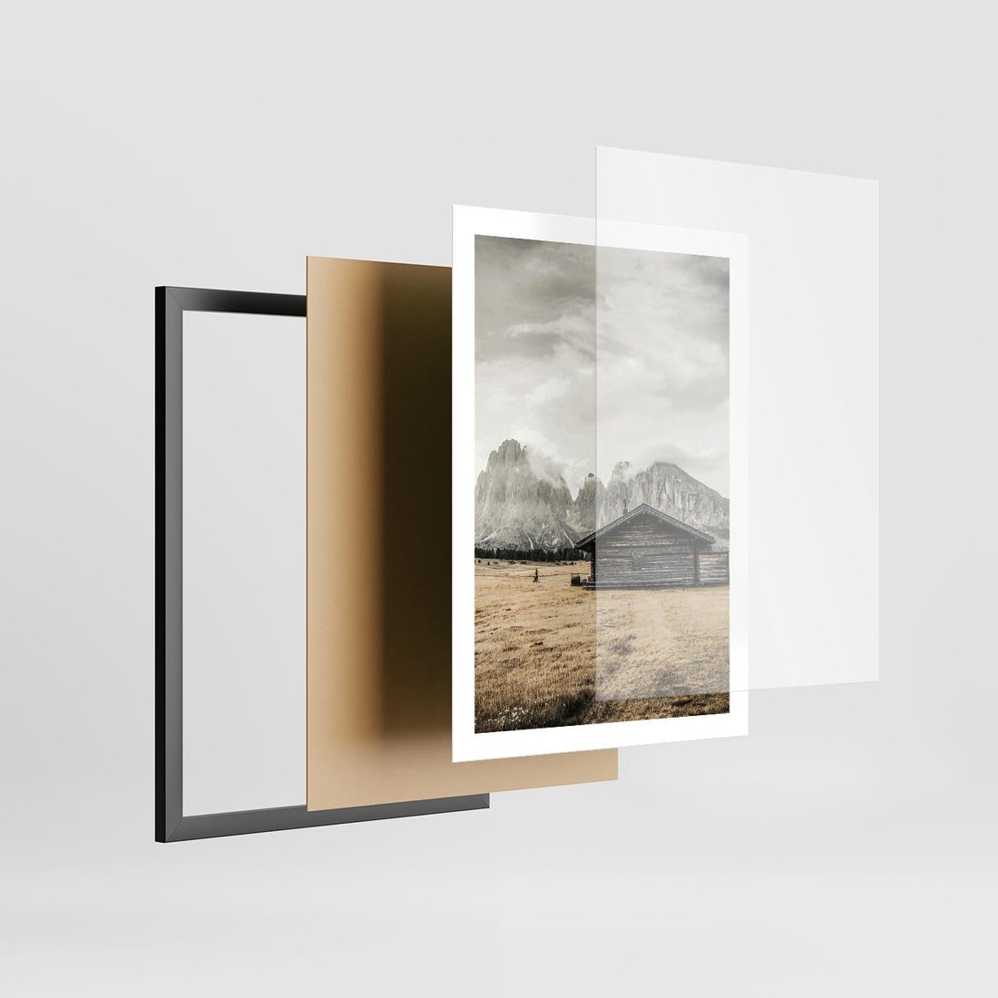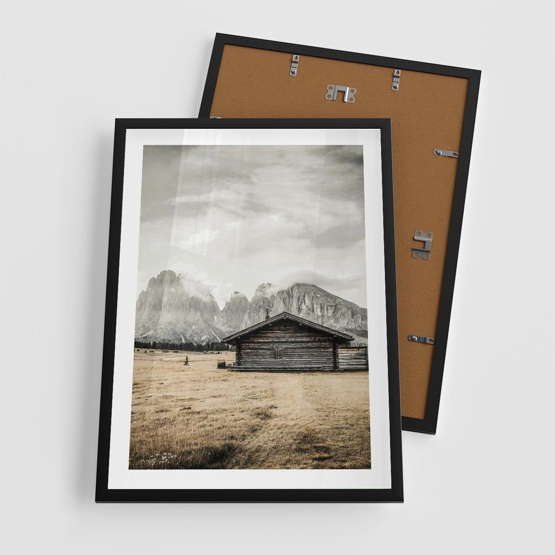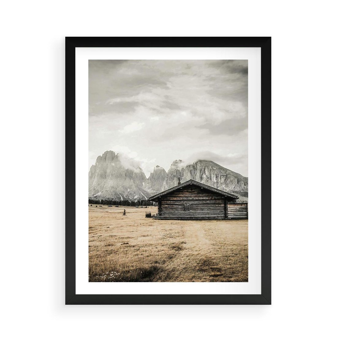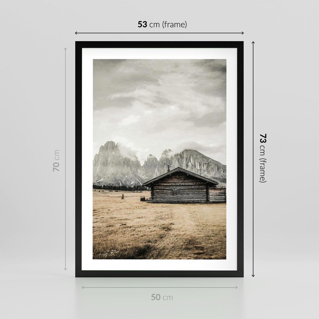 Plakat w ramie 50x70 - Surowa Przestrzeń i Górski Ustronny Azyl - chatka w górach, góry - rama czarna