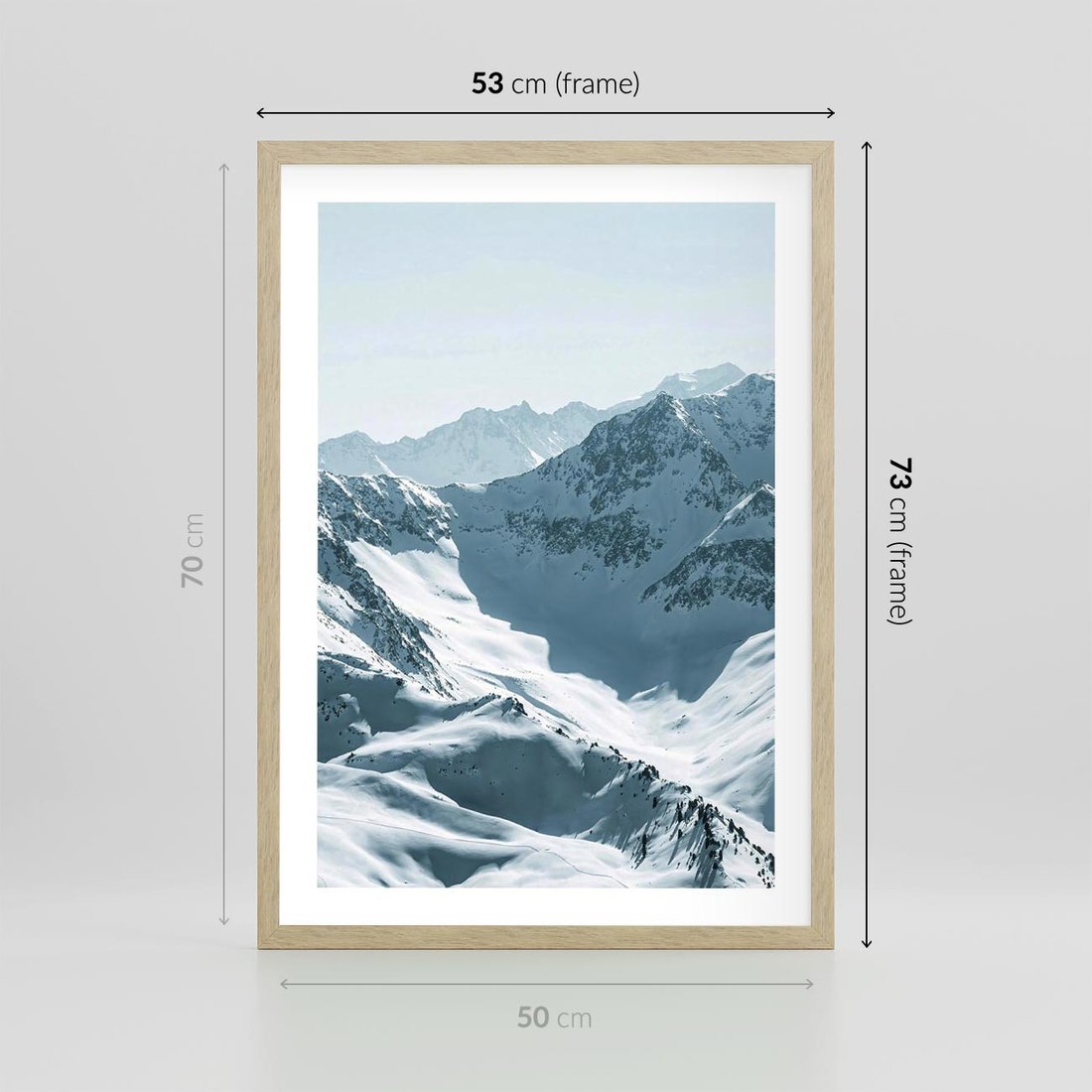 Plakat w ramie 50x70 - Surowość Gór - górskie szczyty, śnieg - rama drewno