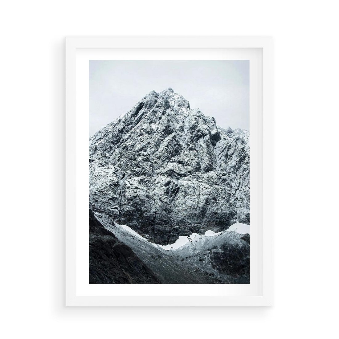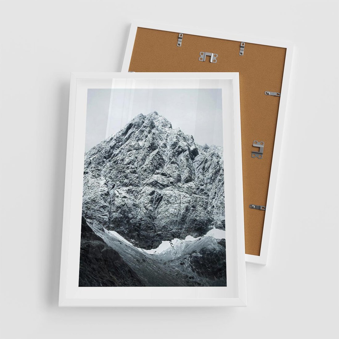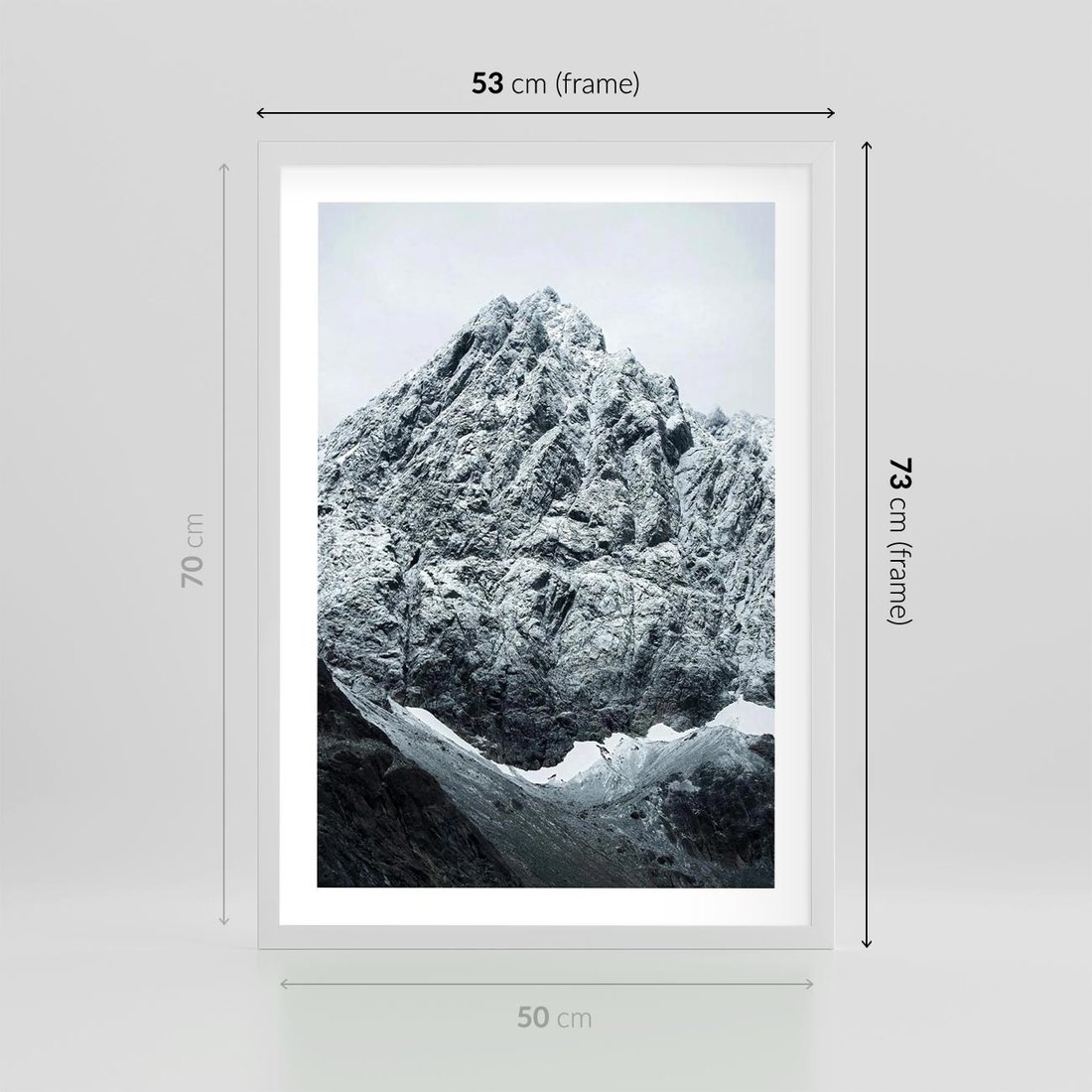 Plakat w ramie 50x70 - Surowość Gór - śnieg, zima w górach - rama biała