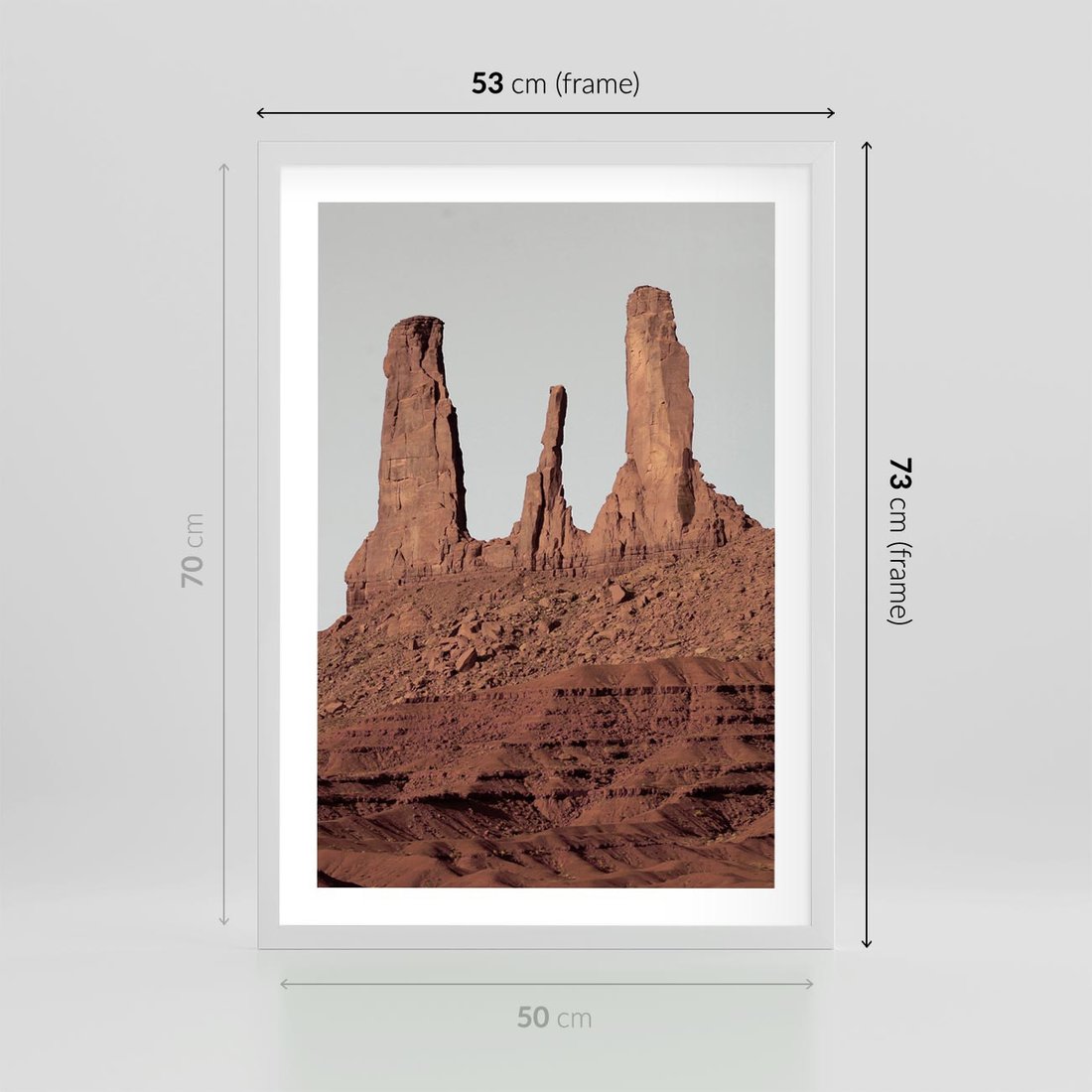 Plakat w ramie 50x70 - Surowość Pustyni - pustynia, kanion - rama biała