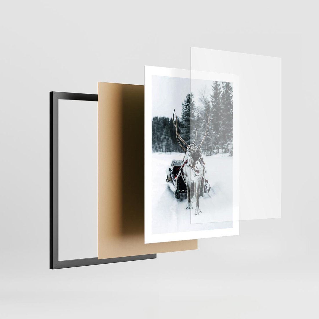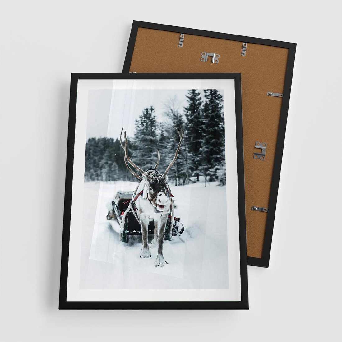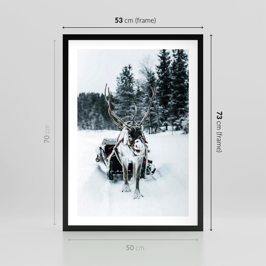 Plakat w ramie 50x70 - Świąteczna Przygoda - renifer, śnieg - rama czarna