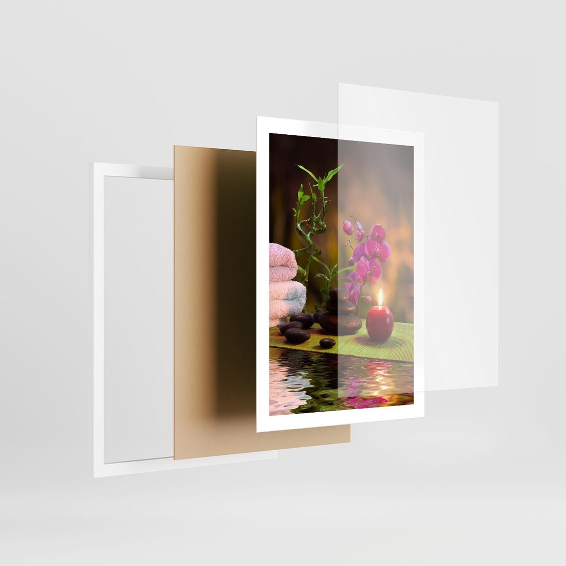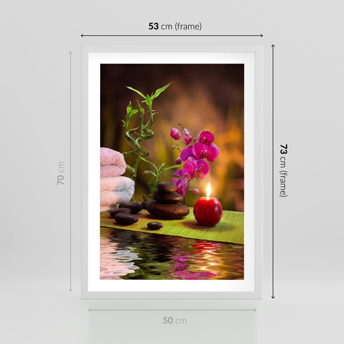 Plakat w ramie 50x70 - Światło Świecących Kwiatów w Spa - spa, świaca - rama biała