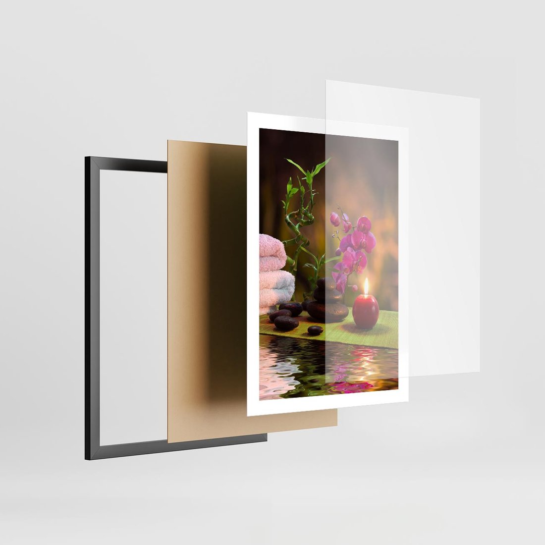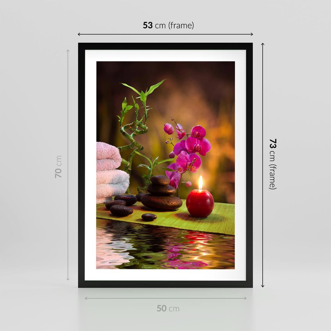 Plakat w ramie 50x70 - Światło Świecących Kwiatów w Spa - spa, świaca - rama czarna