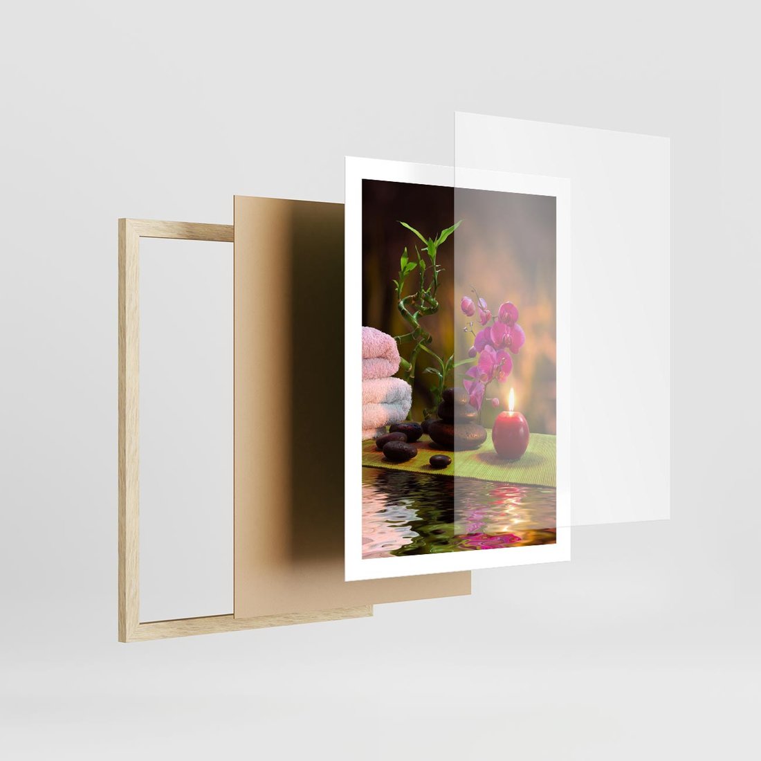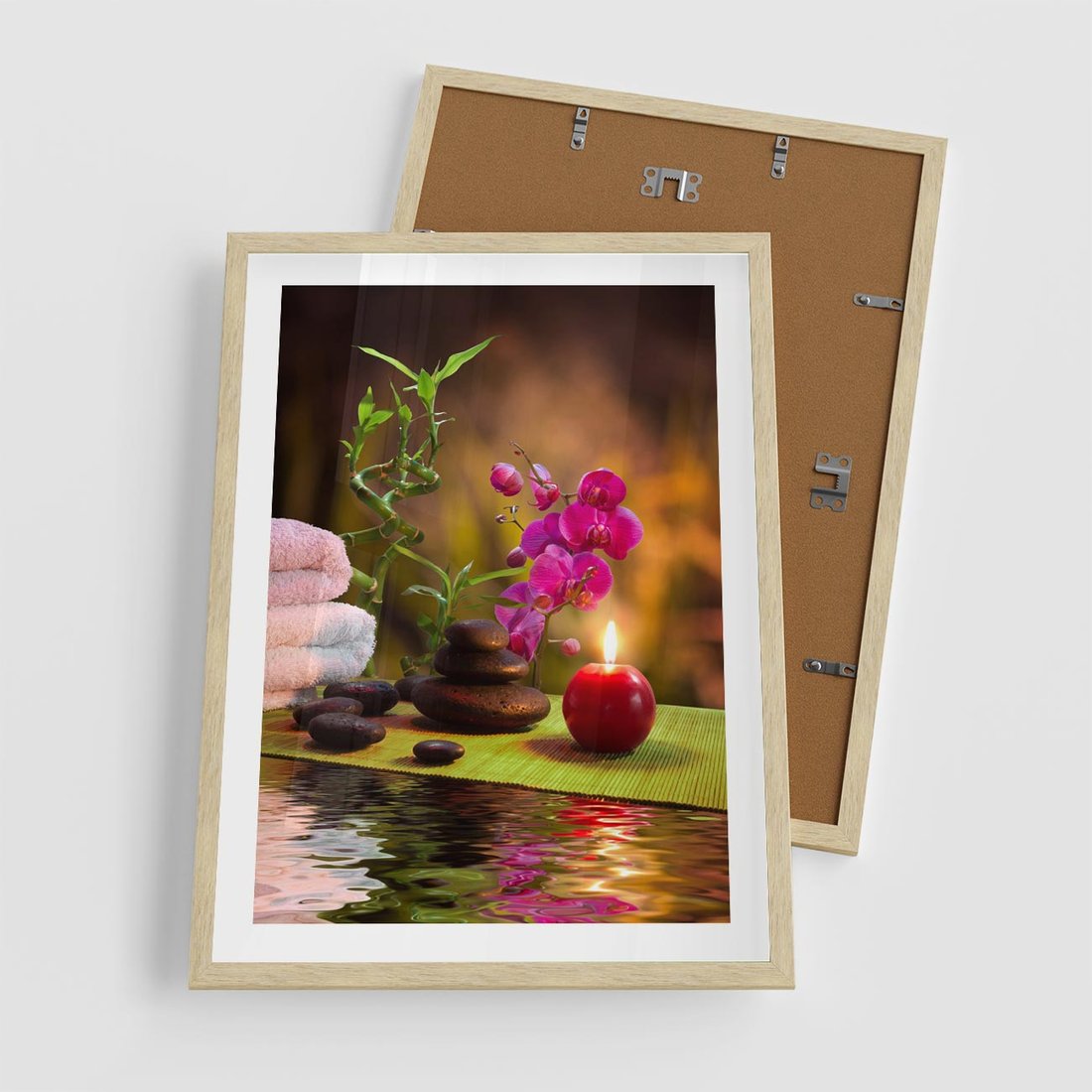 Plakat w ramie 50x70 - Światło Świecących Kwiatów w Spa - spa, świaca - rama drewno