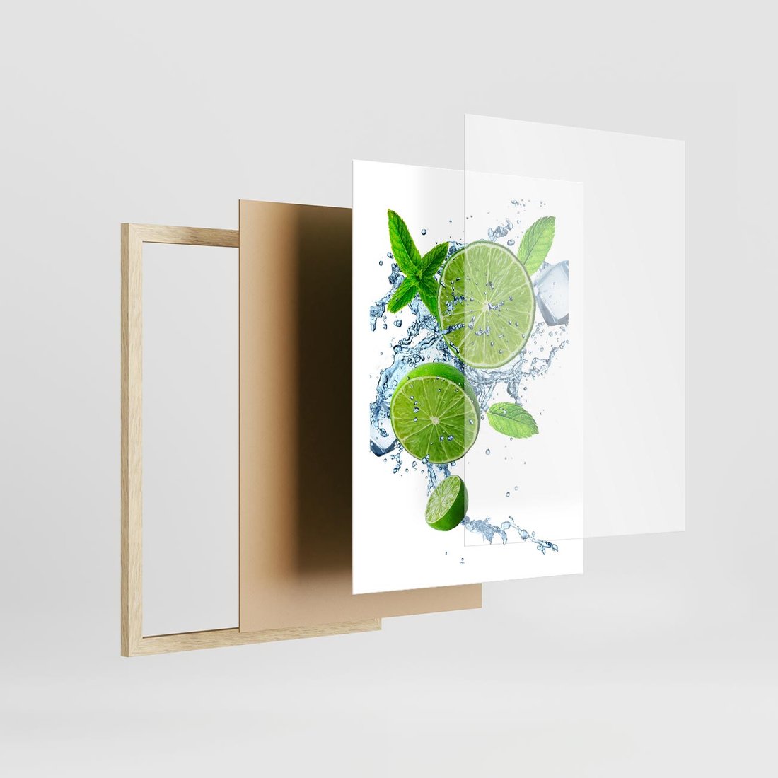 Plakat w ramie 50x70 - Świeżość i Witalność - limonka, owoce - rama drewno