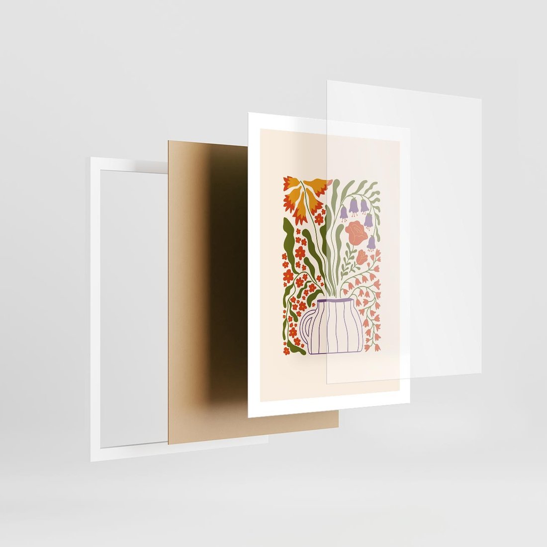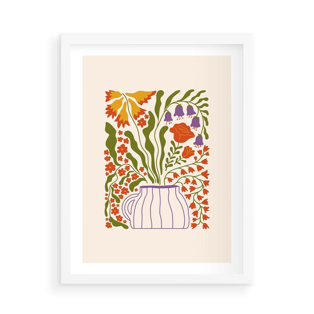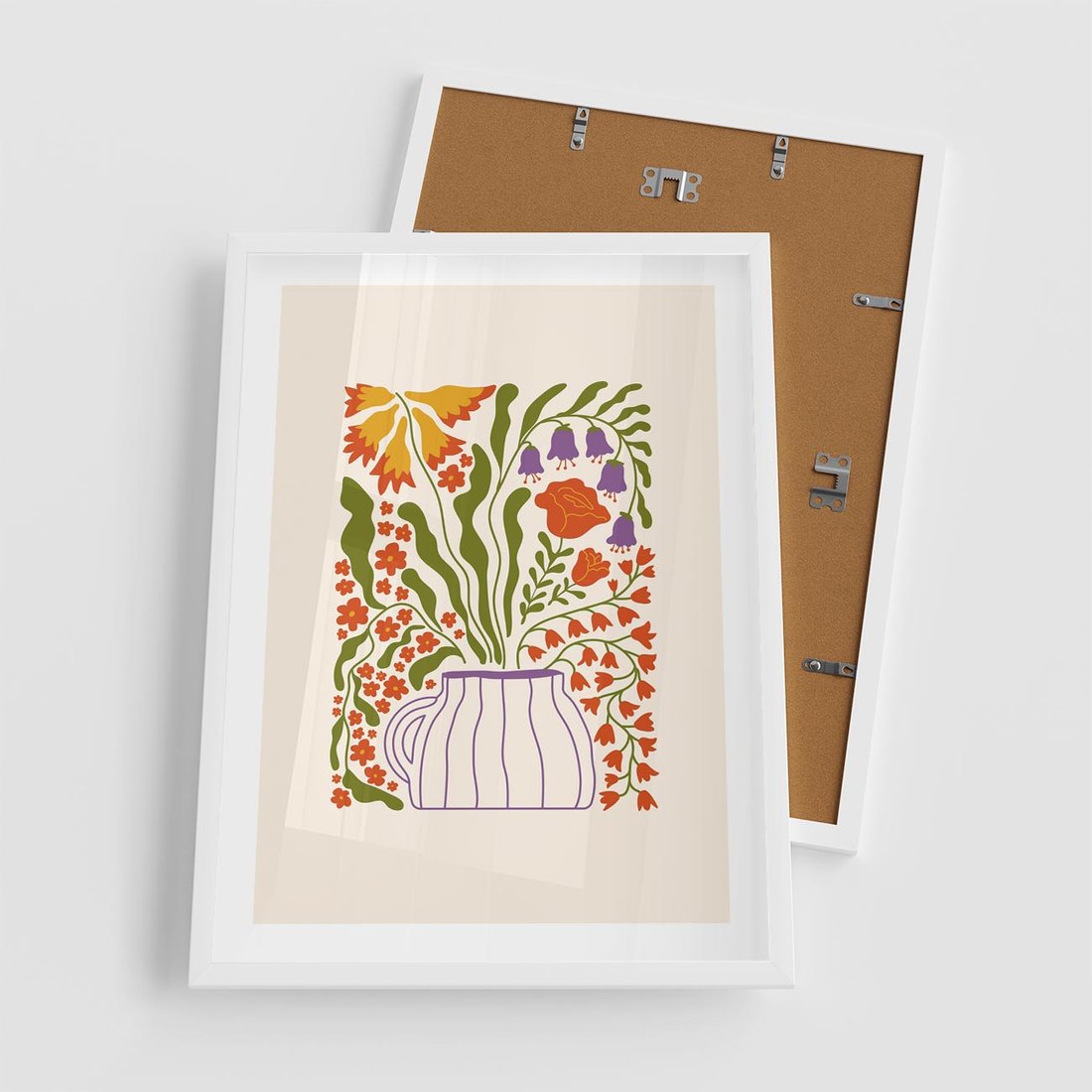 Ten plakat ukazuje kwiaty w wazonie w minimalistycznej kompozycji na białym tle. Zastosowanie żywych kolorów tworzy wrażenie świeżości i radości, podczas gdy minimalistyczny styl dodaje elegancji. Ta praca sztuki wprowadza do przestrzeni wyjątkową harmonię natury i estetyki.