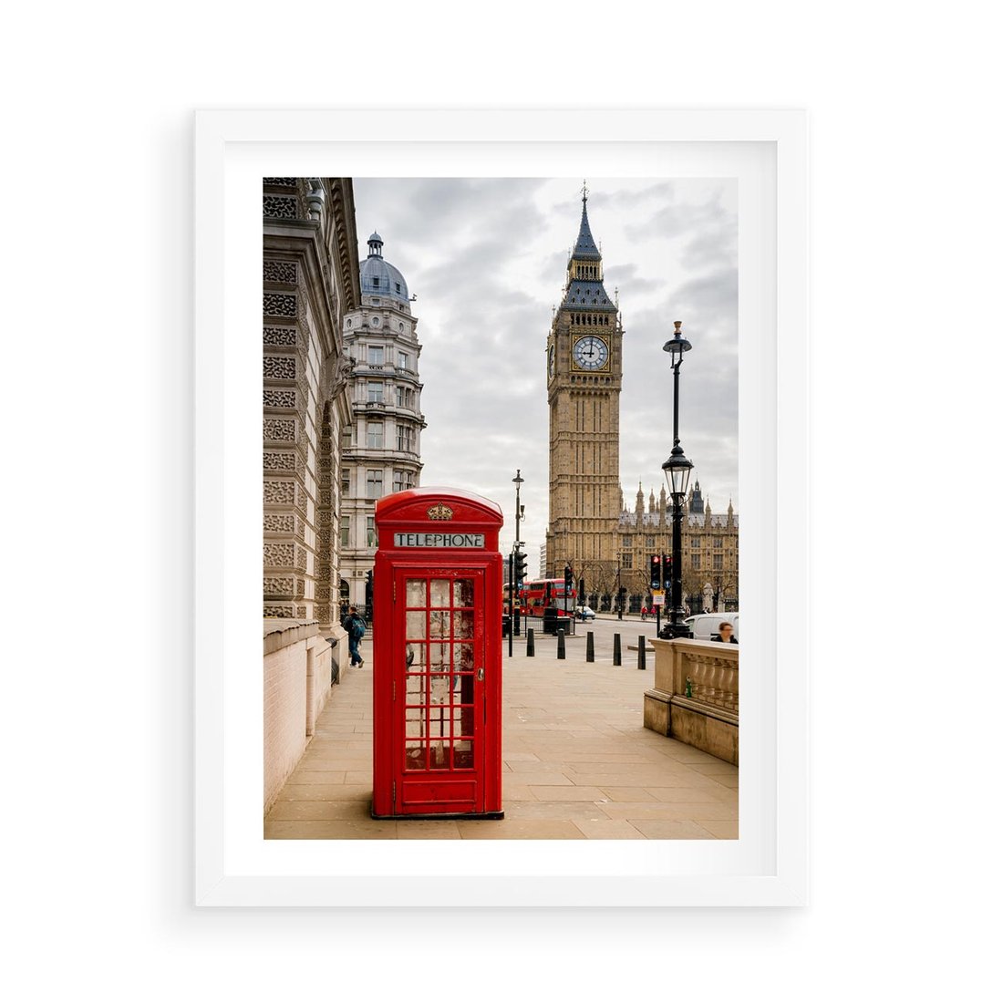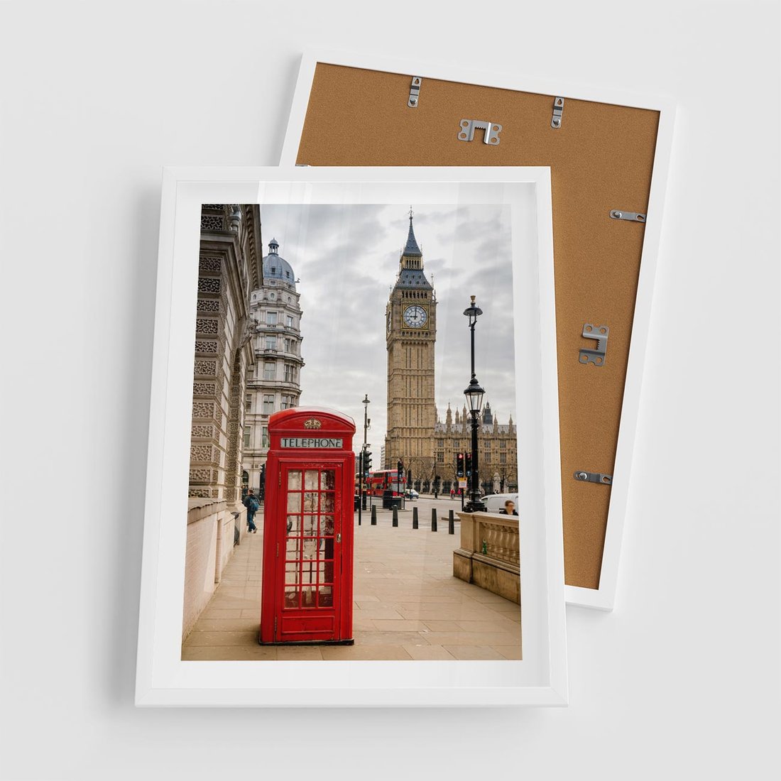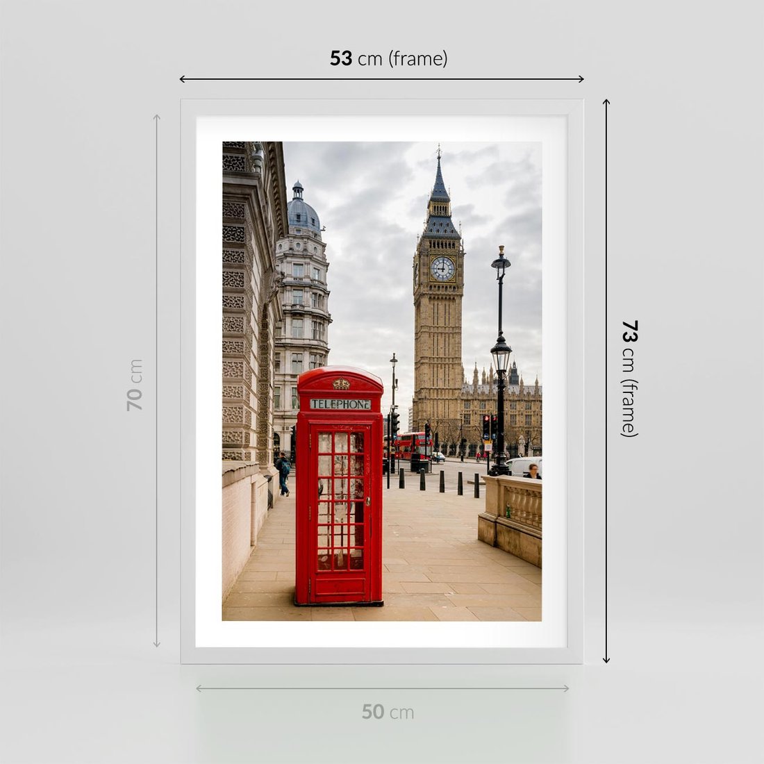 Plakat w ramie 50x70 - Symbol Big Benu - Londyn, budka - rama biała