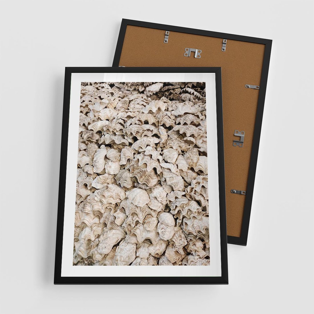 Plakat w ramie 50x70 - Symfonia Natury - kompozycja z białych muszli - rama czarna