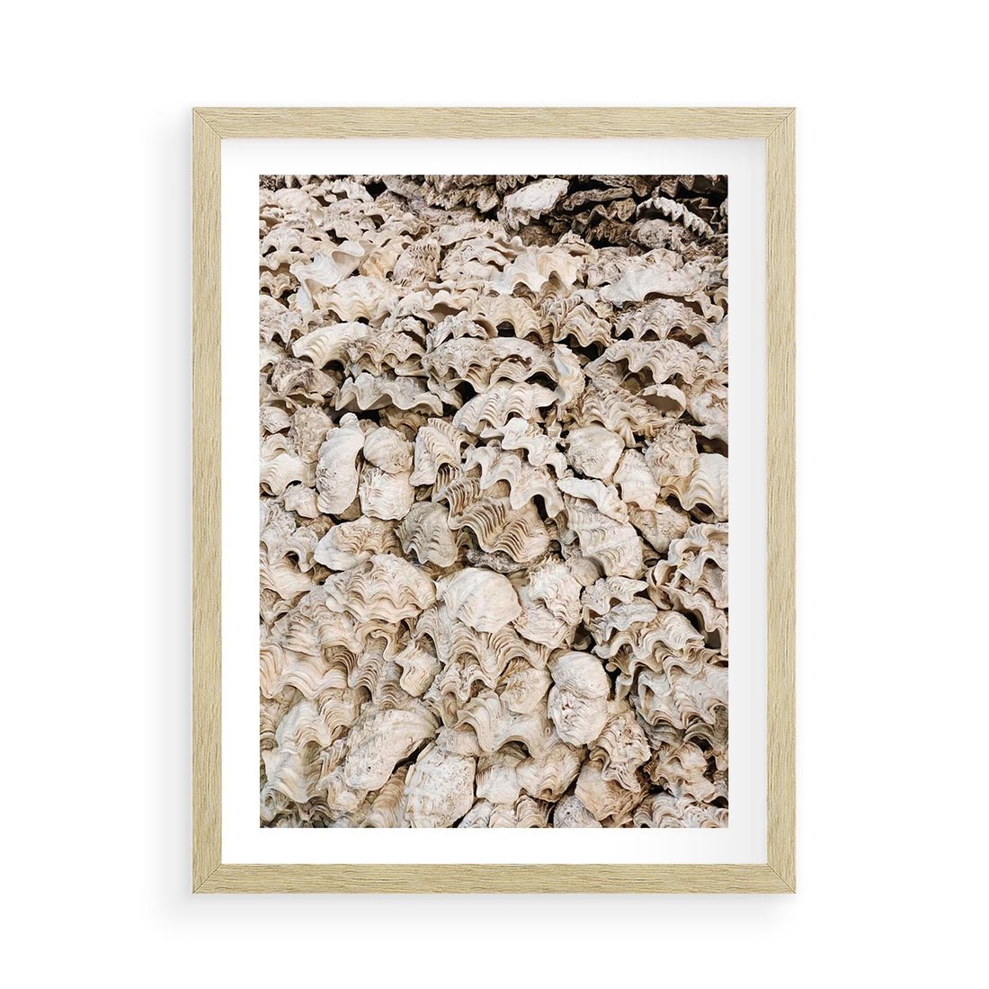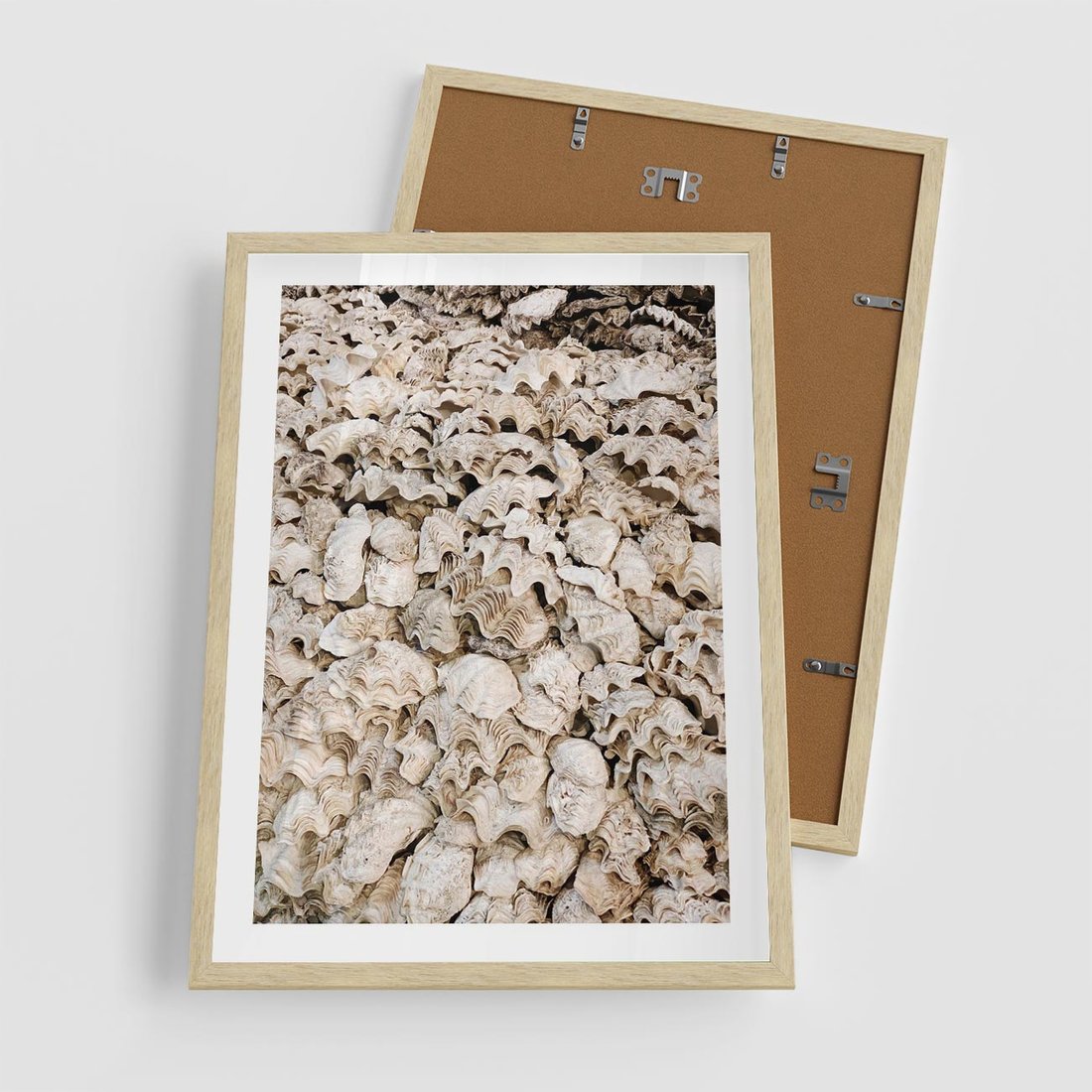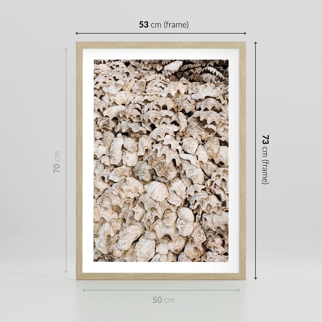 Plakat w ramie 50x70 - Symfonia Natury - kompozycja z białych muszli - rama drewno