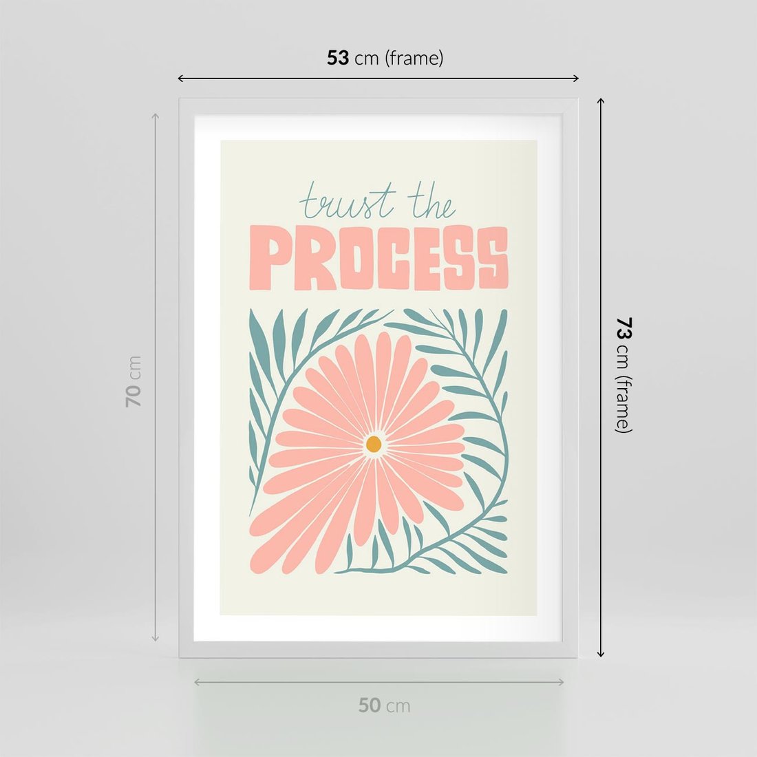 Plakat w ramie 50x70 - Symfonia Światła - typografia, pastelowa stokrotka - rama biała