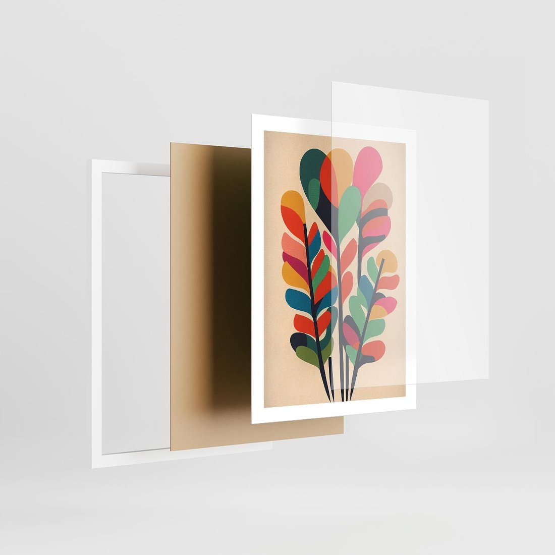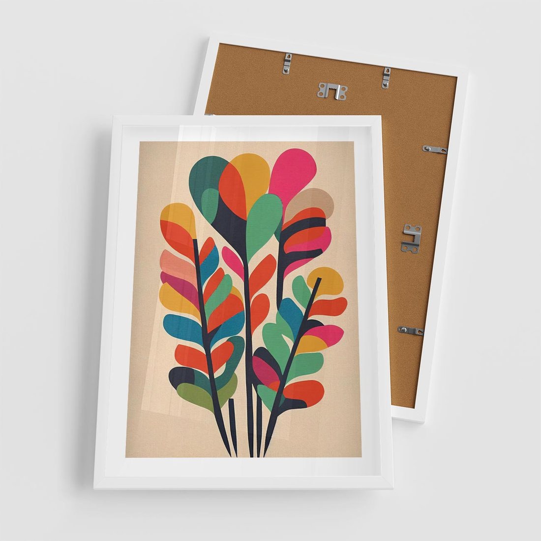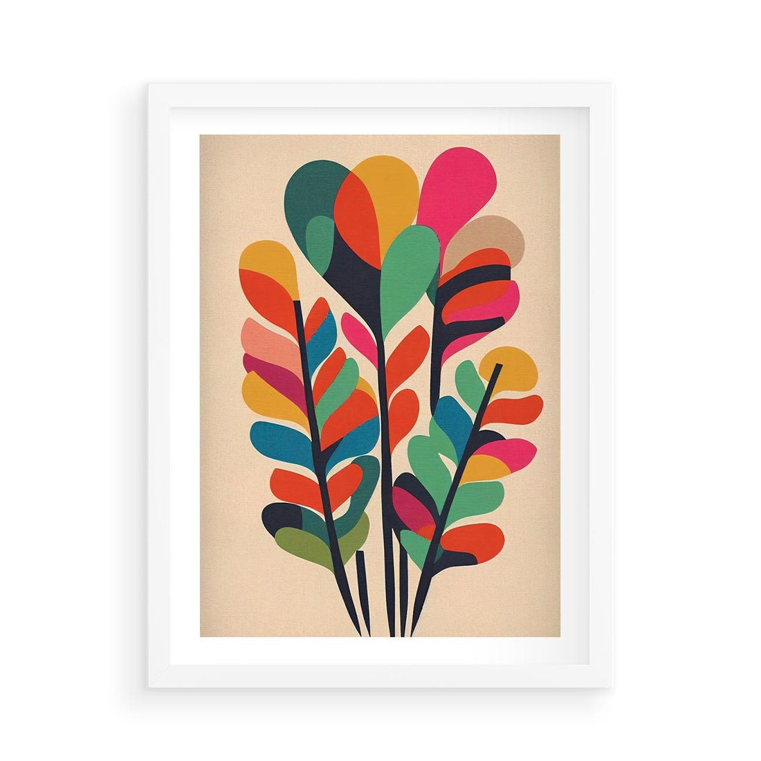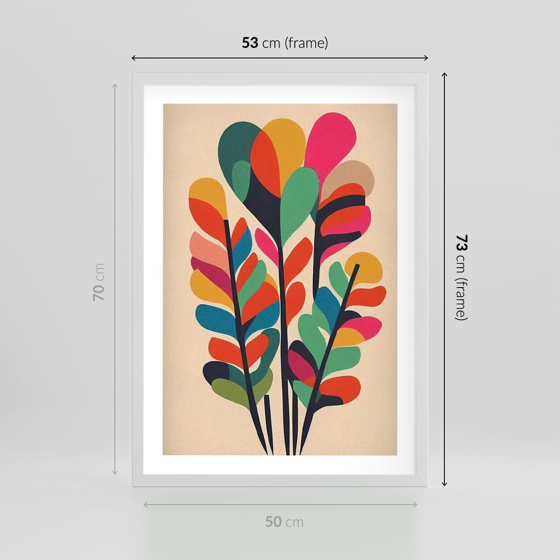 Plakat w ramie 50x70 - Symfonia Wzrokowych Impresji - abstrakcyjny kolorowy tęczowy obraz, inspiracje roślinne - rama biała