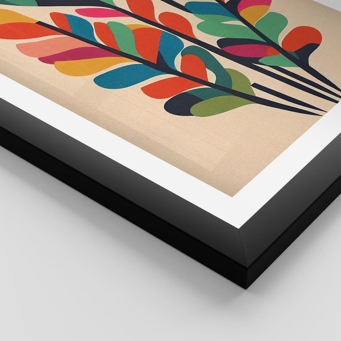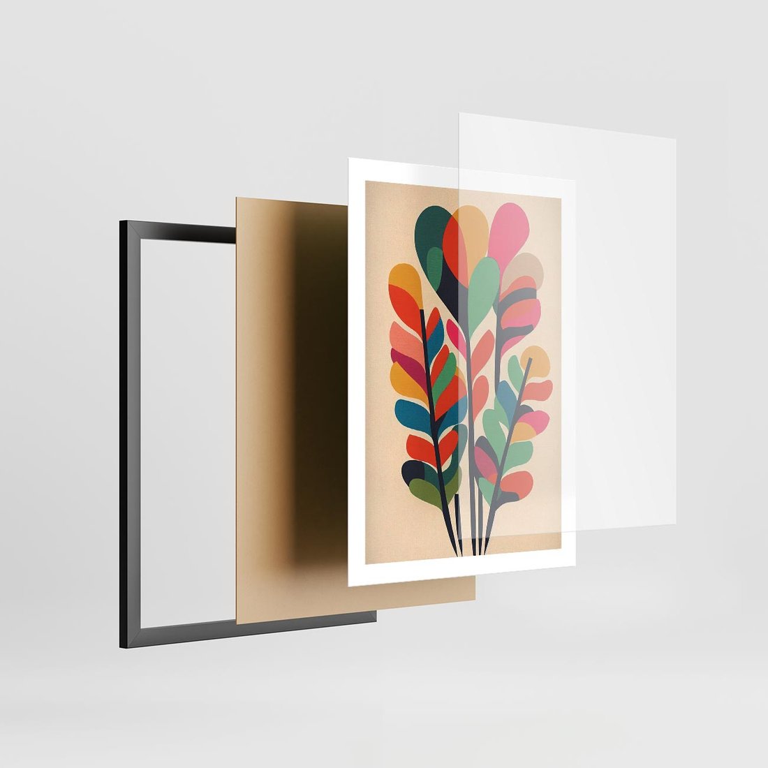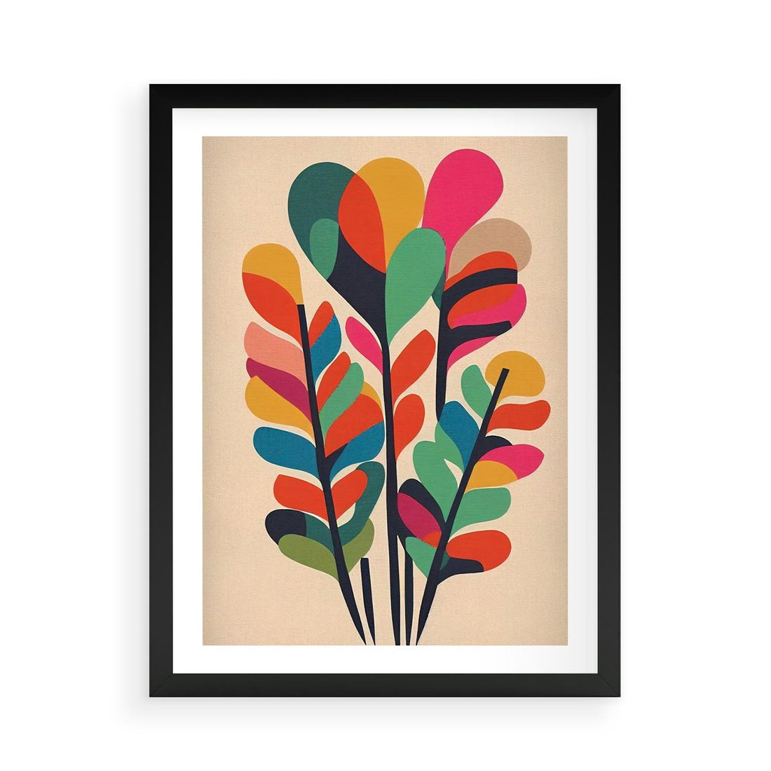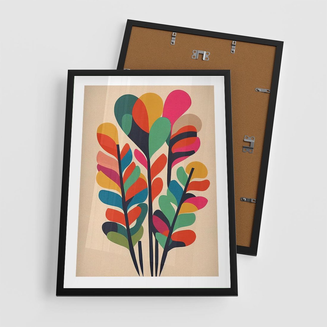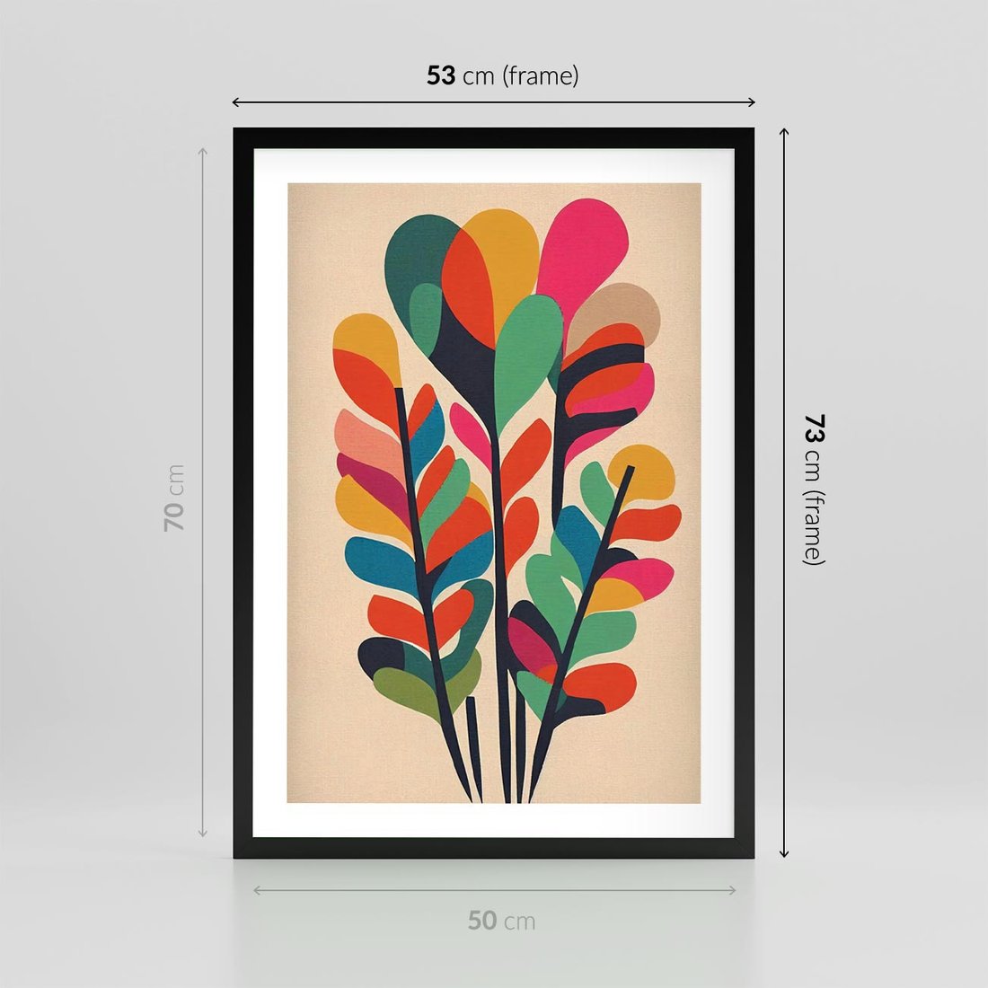 Plakat w ramie 50x70 - Symfonia Wzrokowych Impresji - abstrakcyjny kolorowy tęczowy obraz, inspiracje roślinne - rama czarna