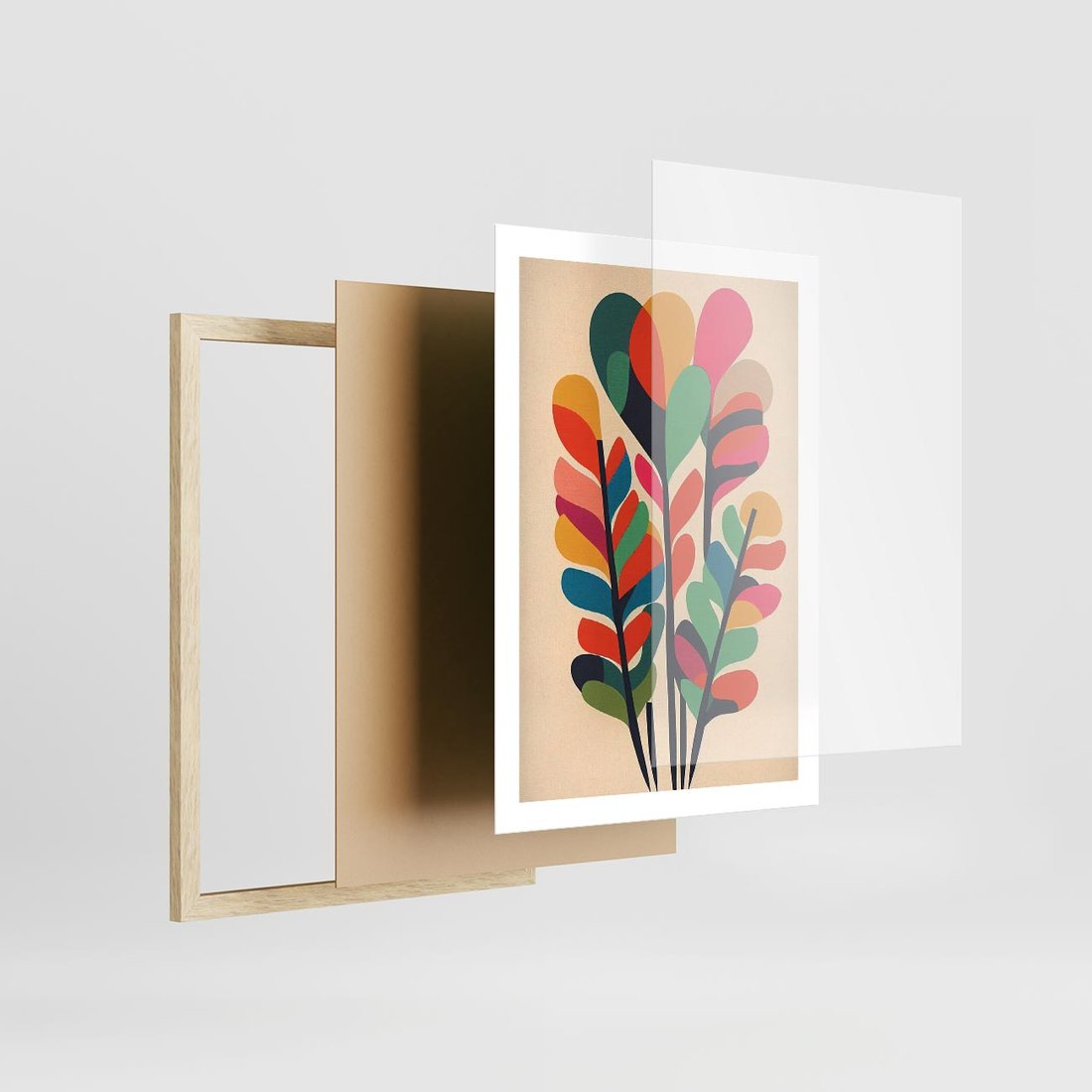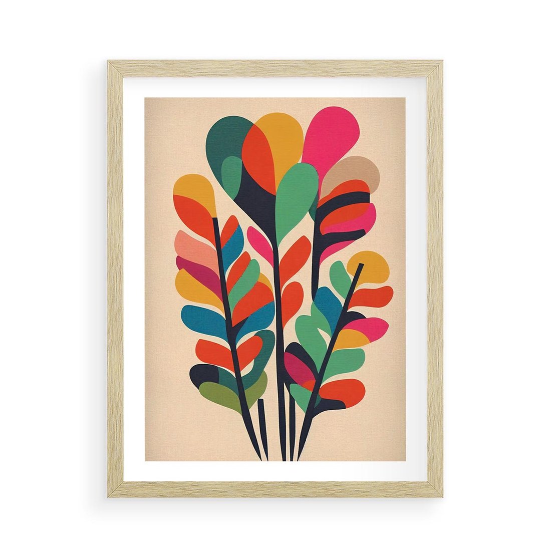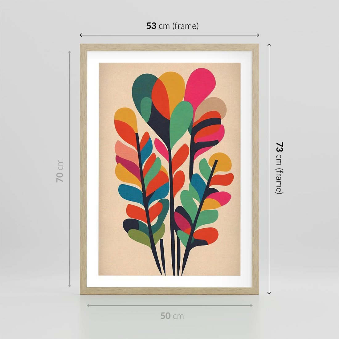 Plakat w ramie 50x70 - Symfonia Wzrokowych Impresji - abstrakcyjny kolorowy tęczowy obraz, inspiracje roślinne - rama drewno