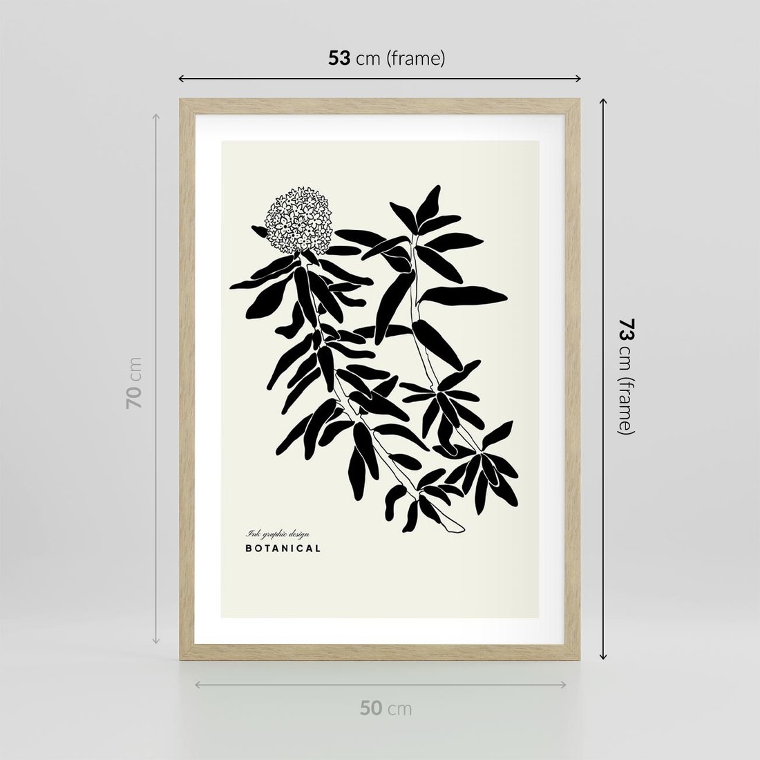Plakat w ramie 50x70 - Szept kwiatowej wyobraźni - czarno biała grafika, roślinność - rama drewno