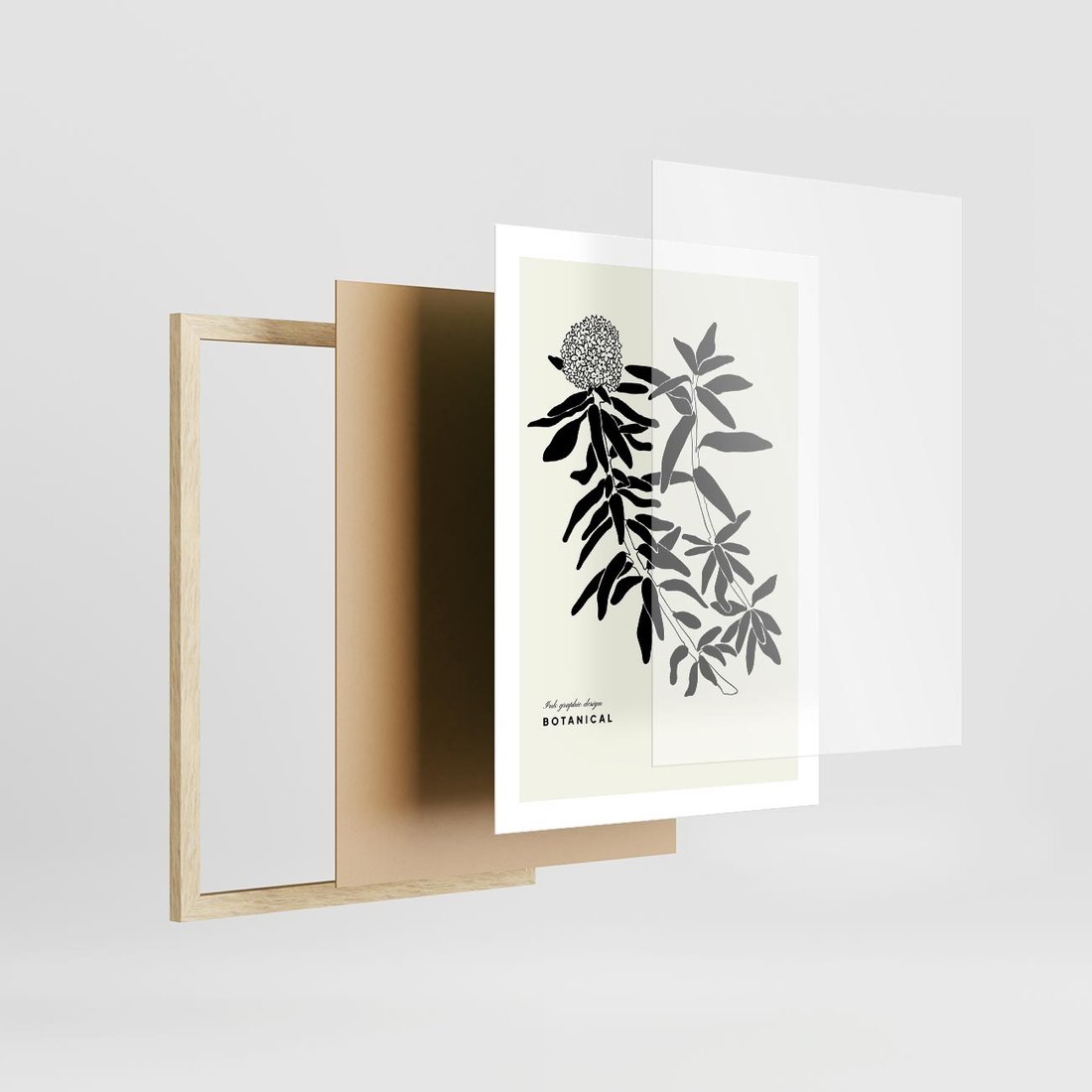 Czarne i białe grafiki ukazują piękno roślinności i liści w minimalistycznym stylu. Ożywiający obraz roślinnych motywów oraz delikatnych kwiatów wkomponowanych w prostą formę. To minimalistyczne dzieło sztuki jest doskonałym wyborem dla miłośników natury, pragnących wnieść subtelny akcent roślinności do swojego wnętrza, utrzymując jednocześnie estetykę minimalizmu.