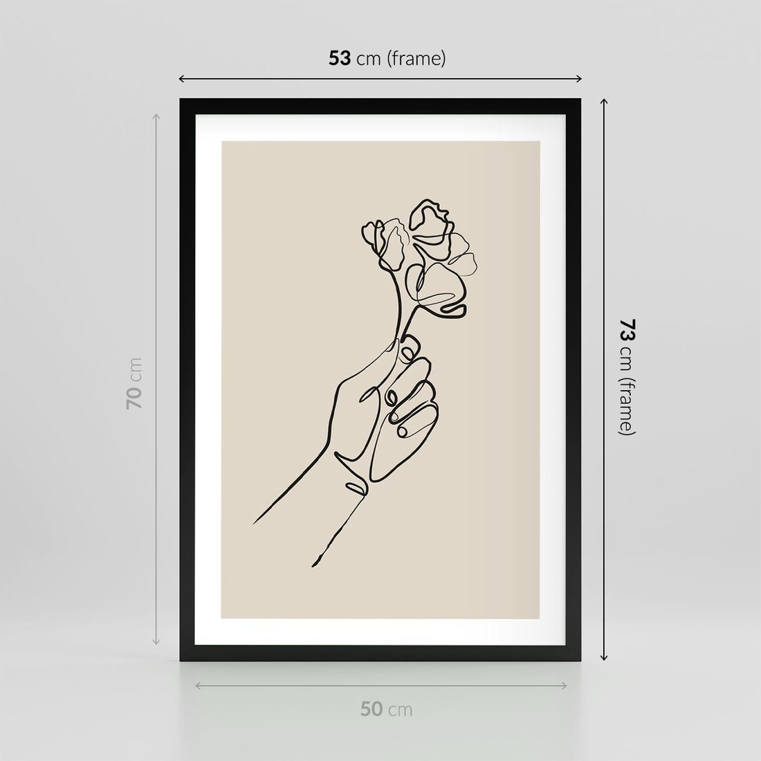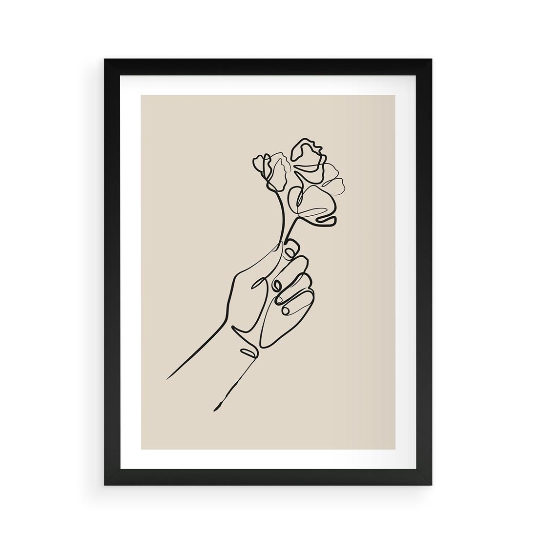 Ten czarno-biały szkic ukazuje minimalistyczną kreskę kwiatu trzymanego w dłoni. Sztuka ta oddaje delikatność i piękno natury poprzez prostotę linii, tworząc wyjątkowy obraz, który zachwyca swoją subtelnością i wdziękiem, stanowiąc minimalistyczny akcent z odrobiną natury w Twojej przestrzeni.