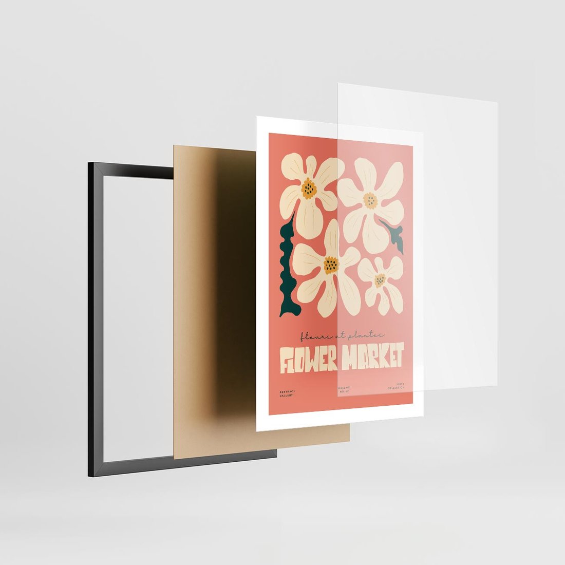 Plakat w ramie 50x70 - Szkicowane Kolorowe Uczucia - kwiatowa kompozycja, minimalizm - rama czarna