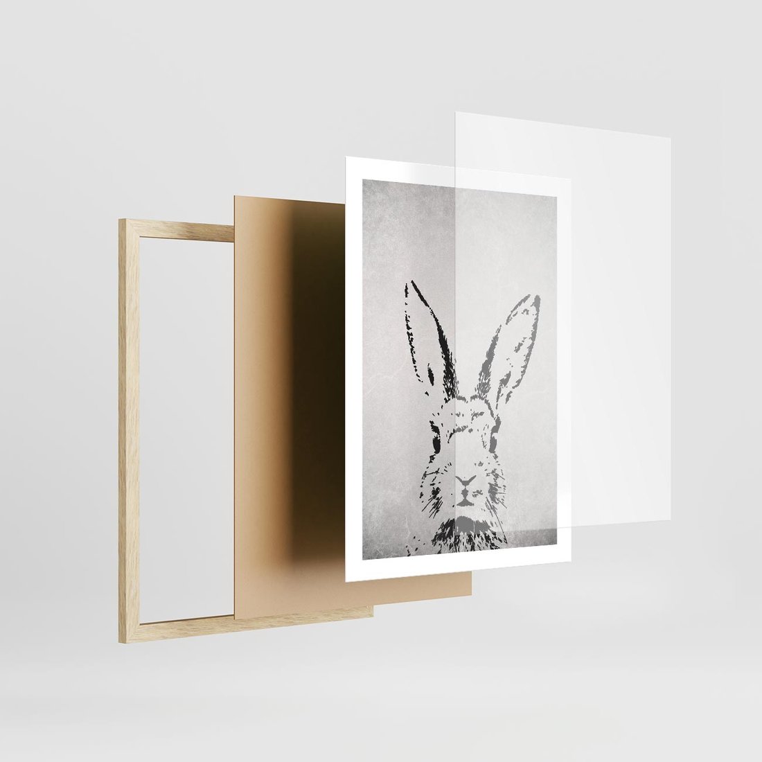 - Plakat w ramie 50x70 - Szkicowany królik w grafice