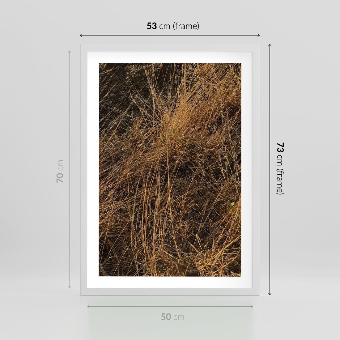 Plakat w ramie 50x70 - Szlachetna Suchość Traw - trawy, suche trawy - rama biała