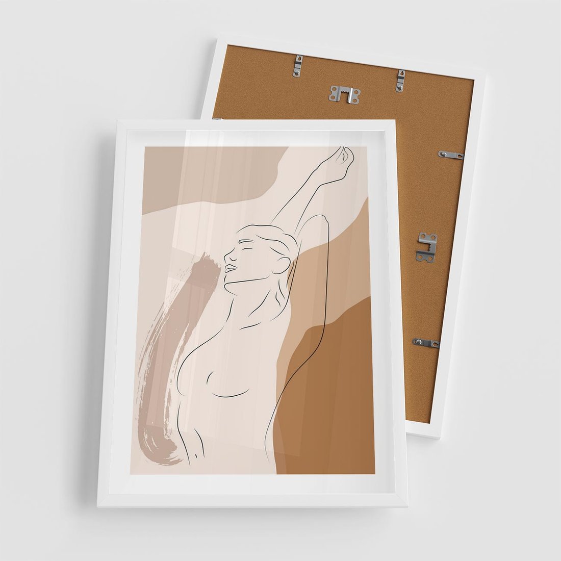 Plakat w ramie 50x70 - Sztuka Nagiej Formy - szkic nagiej kobiety, kolory beżowe - rama biała
