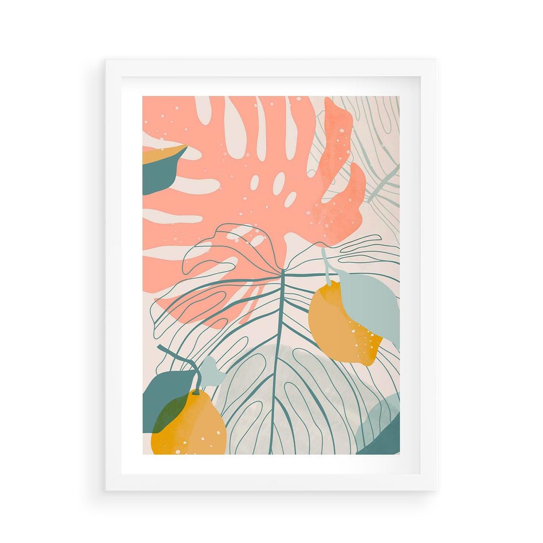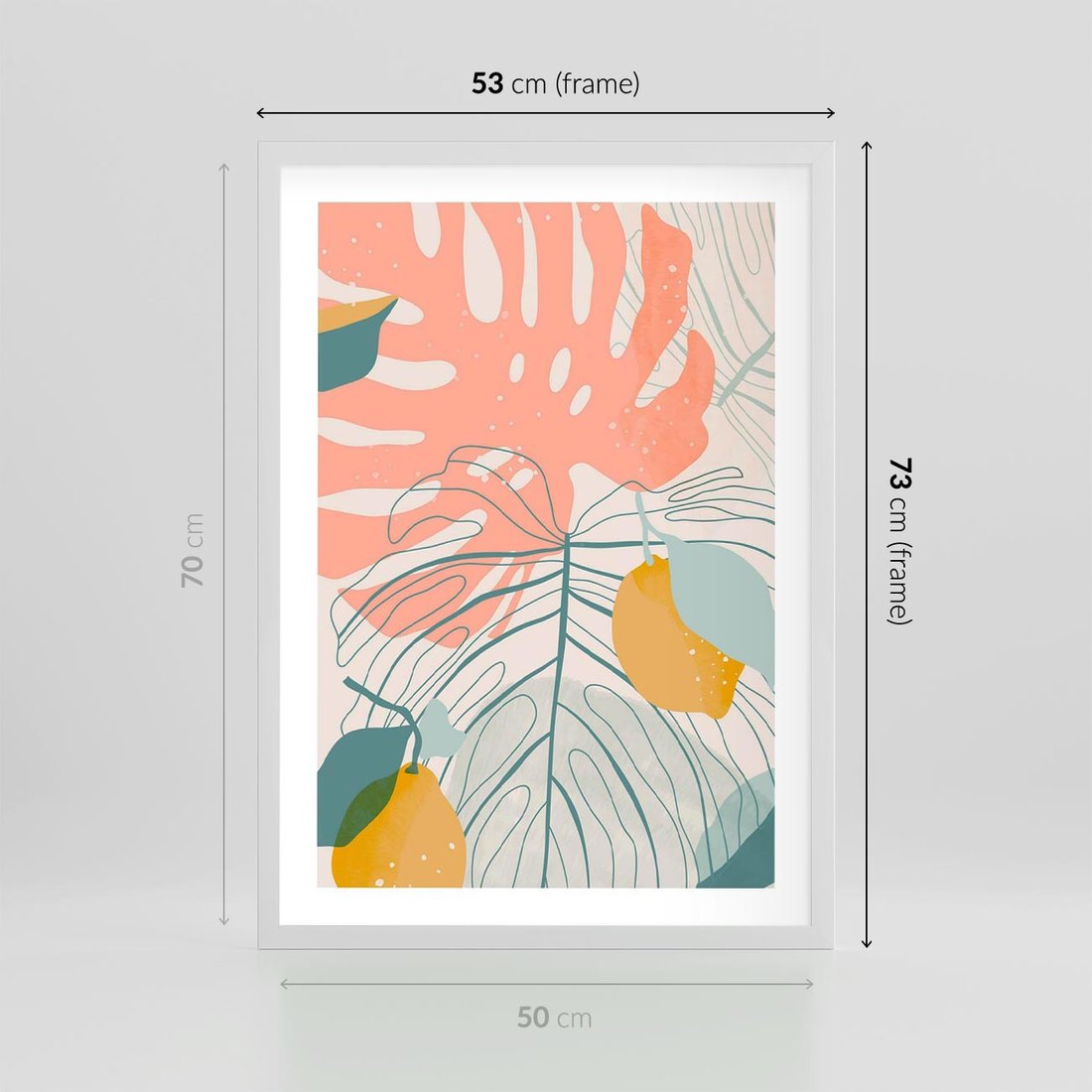 - Plakat w ramie 50x70 - Sztuka Natury: Liście Monstery w Pastelach