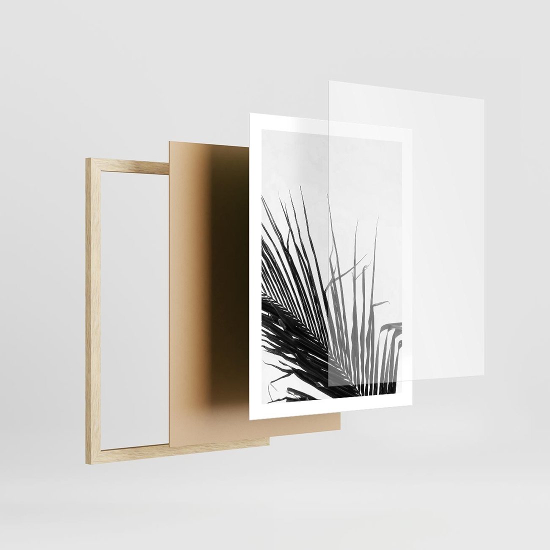 • Plakat w ramie 50x70 - Sztuka Natury: Monochromatyczna Palma