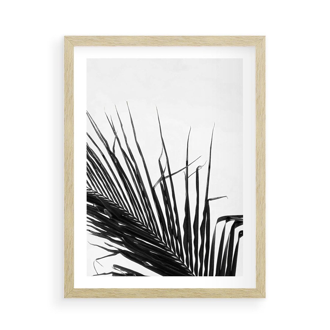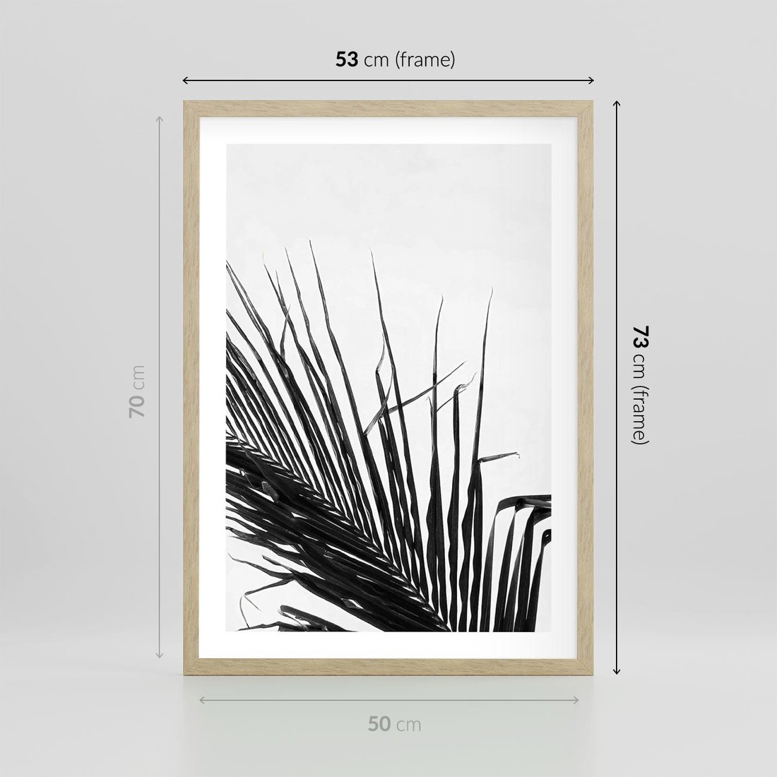 Plakat w ramie 50x70 - Sztuka Natury: Monochromatyczna Palma - palma, czarno białe zdjęcie - rama drewno