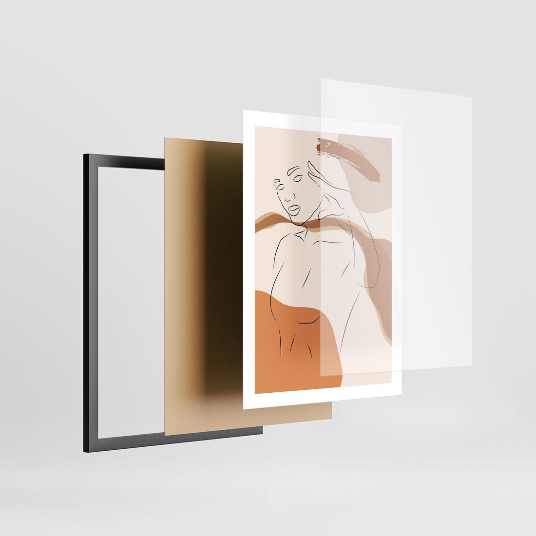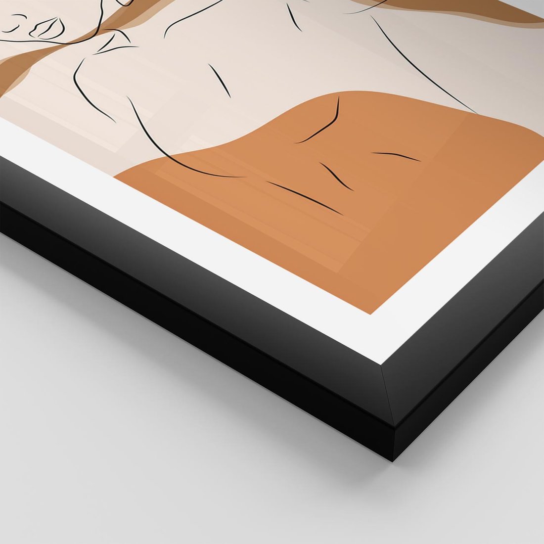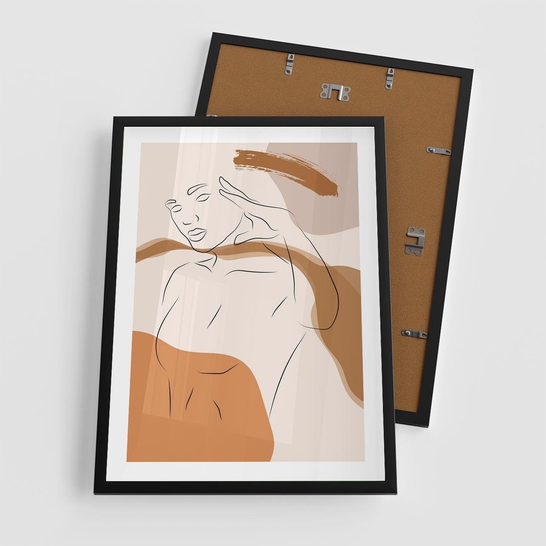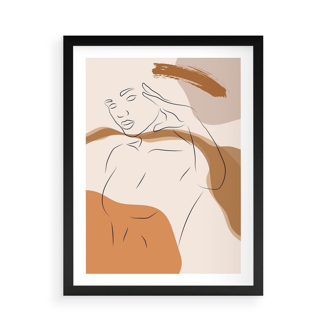 Plakat w ramie 50x70 - Sztuka Piękna w Beżach i Brązach - szkic jedną linią, naga kobieta - rama czarna