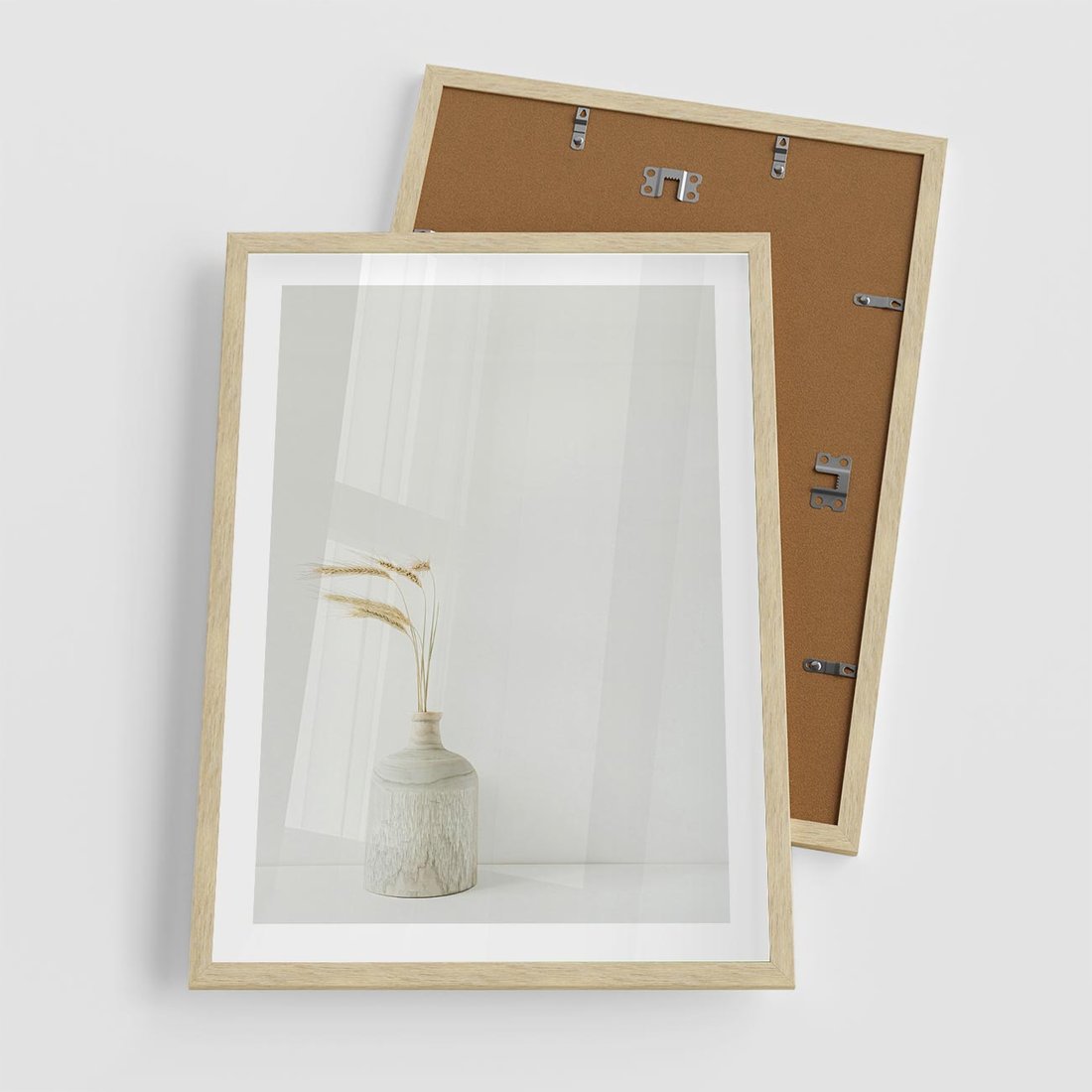 Plakat w ramie 50x70 - Sztuka Prostoty - minimalistyczny wazon, źdźbła traw - rama drewno
