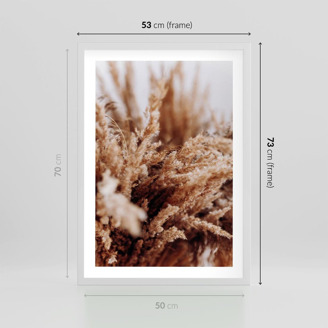 Plakat w ramie 50x70 - Sztuka Suszonych Traw - trawa pampas, suszone trawy - rama biała