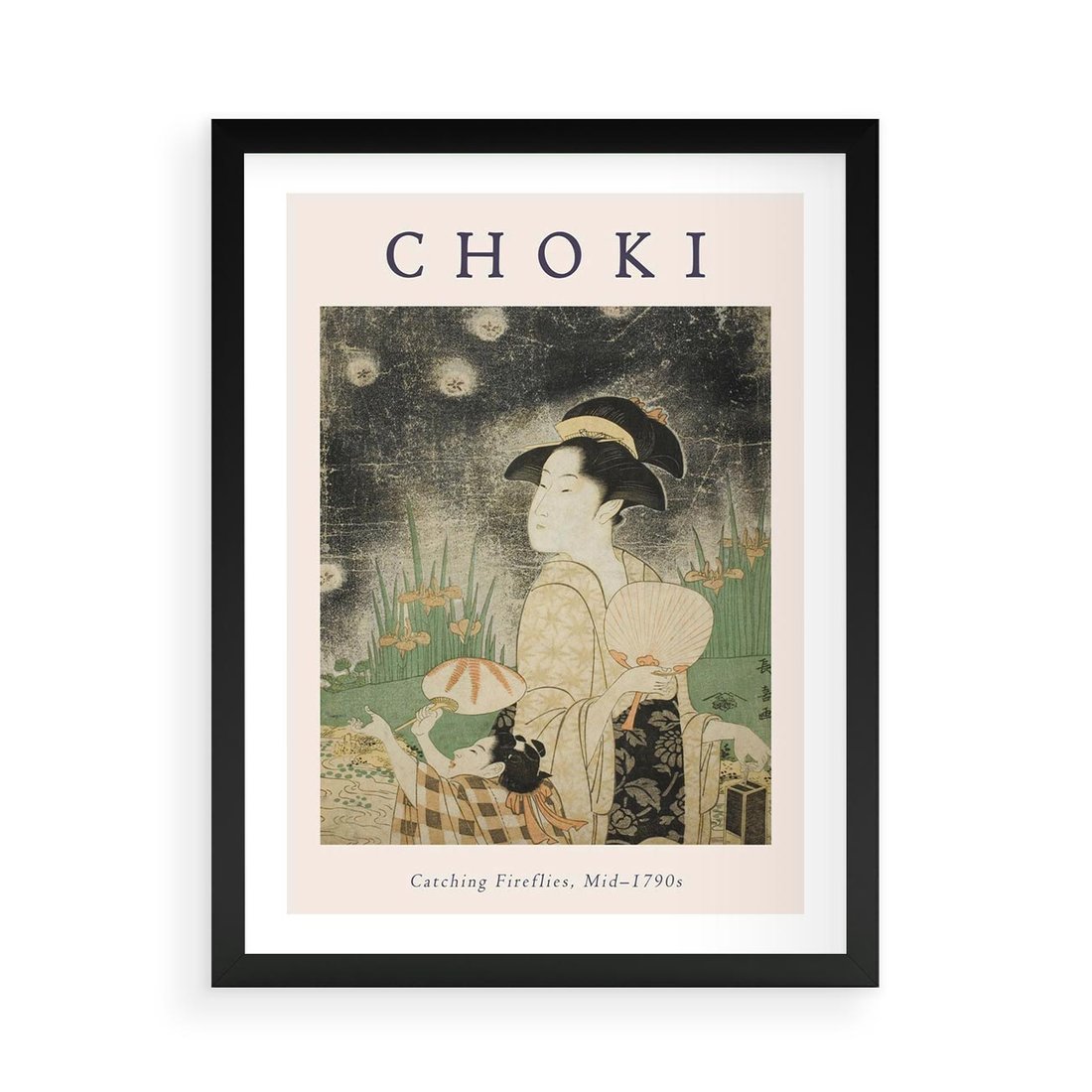 Obraz przedstawia reprodukcję ryciny, która nawiązuje do sztuki Chokiego, łączącej wpływy kultury chińskiej i japońskiej. Ta kompozycja jest pełna delikatności i subtelności.