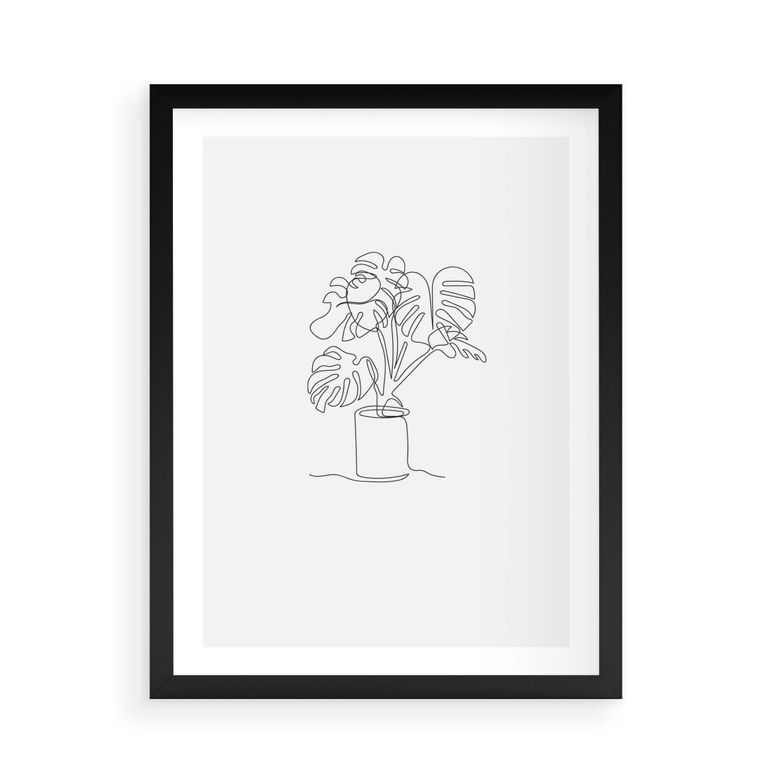 Plakat w ramie 50x70 - Tajemnicza Harmonia - sztuka one line, monstera - rama czarna