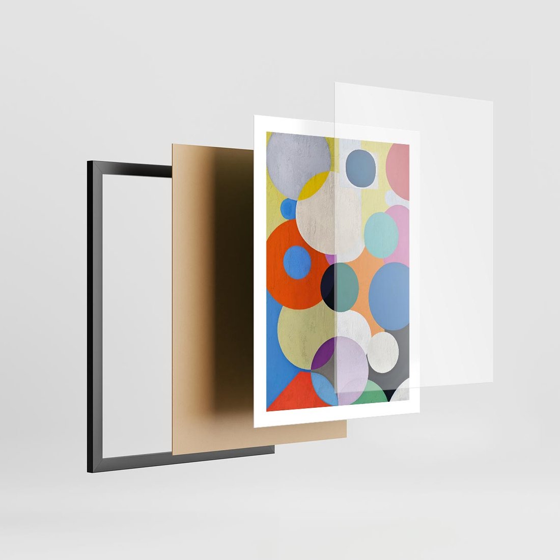Plakat w ramie 50x70 - Tajemnicze Odbicia Czasu - abstrakcyjne geometryczne kształty, olejny obraz - rama czarna