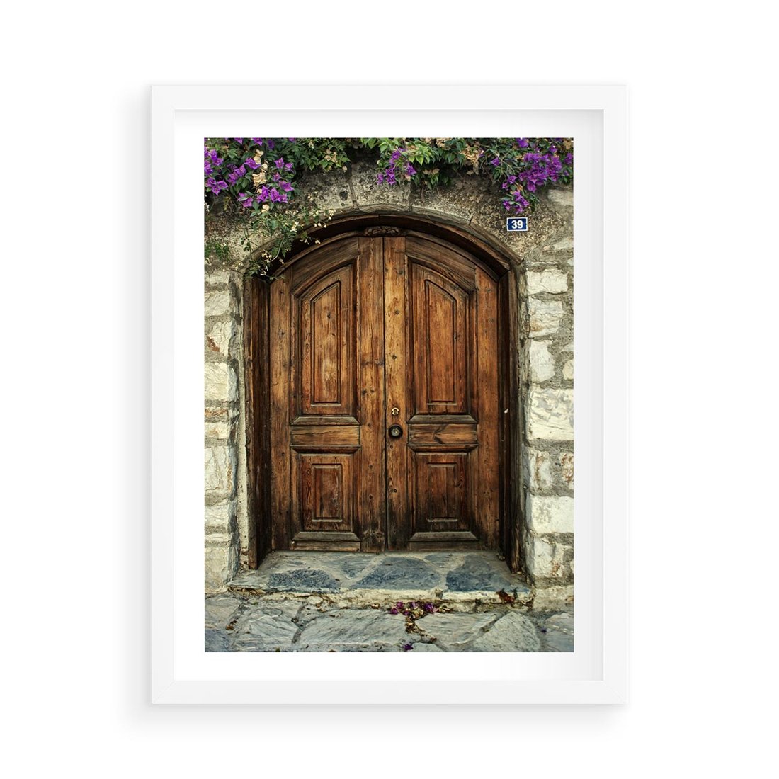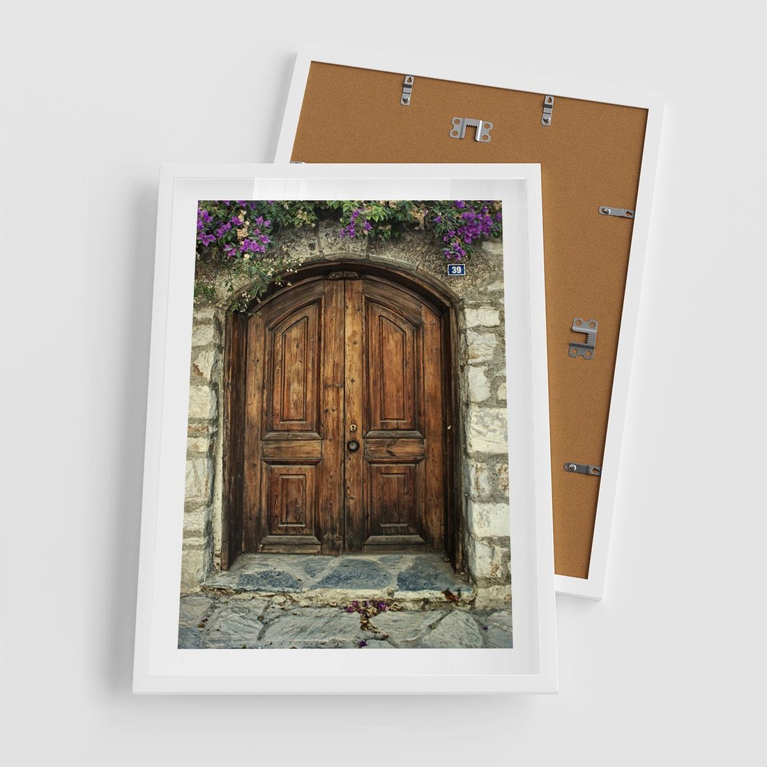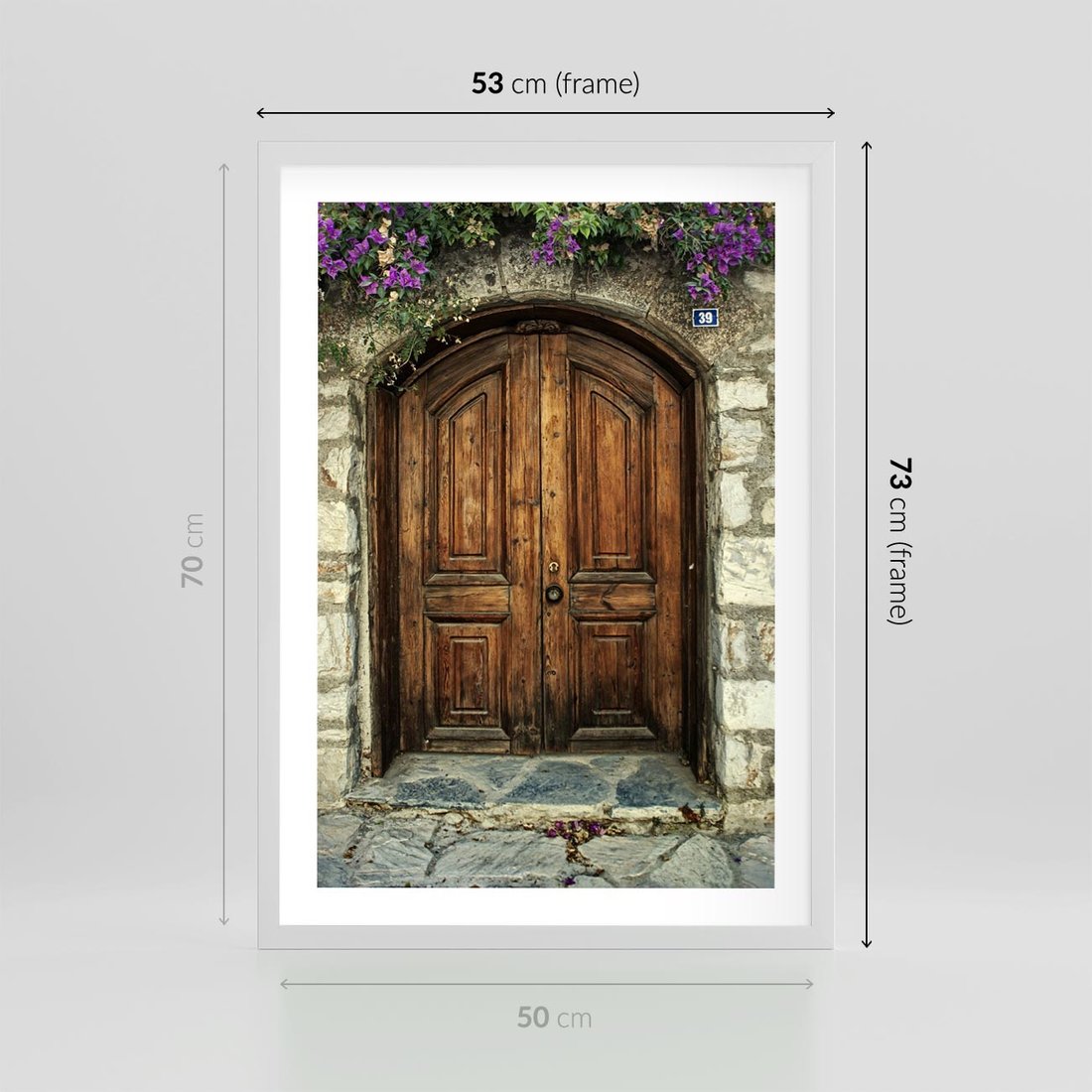 Plakat w ramie 50x70 - Tajemnicze stare drzwi - stare, drzwi - rama biała