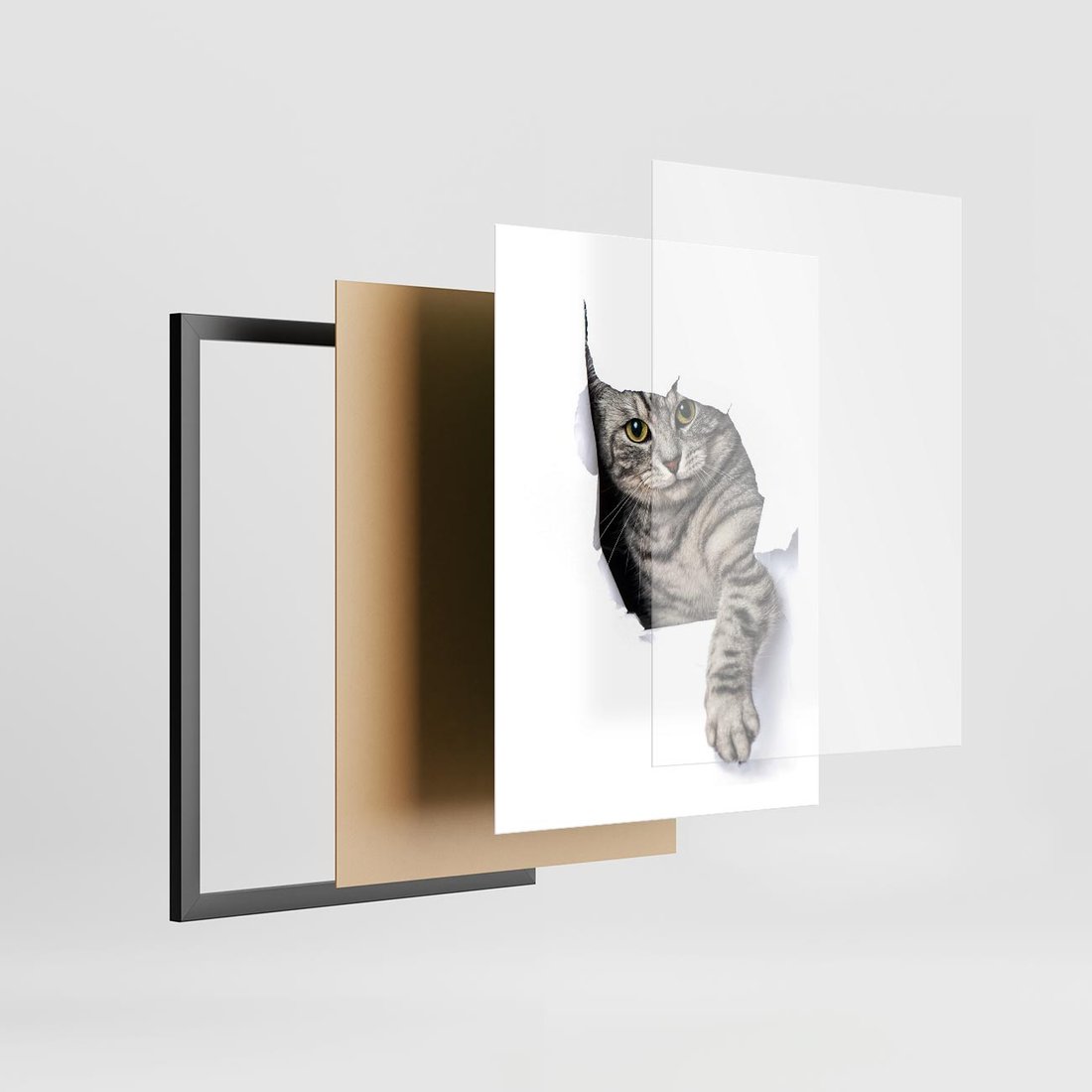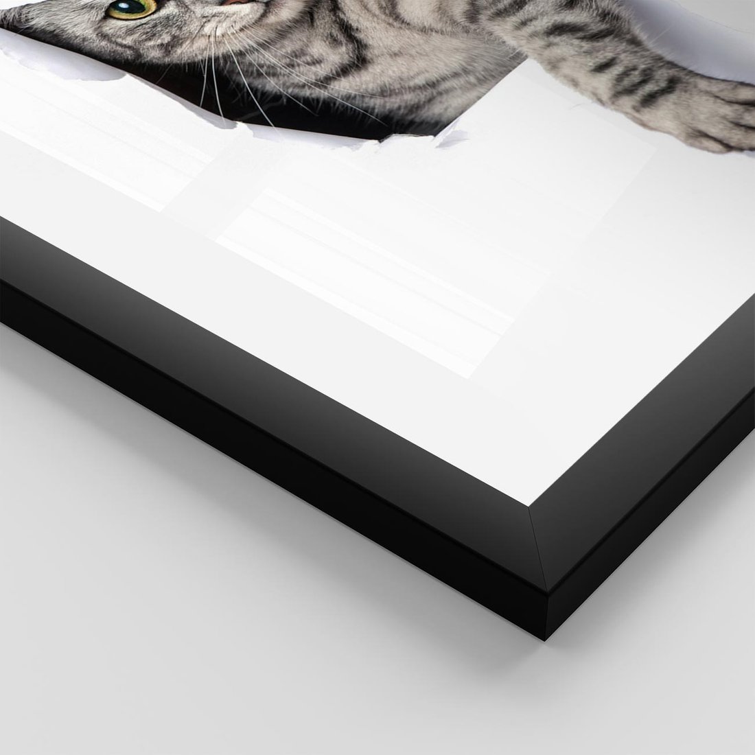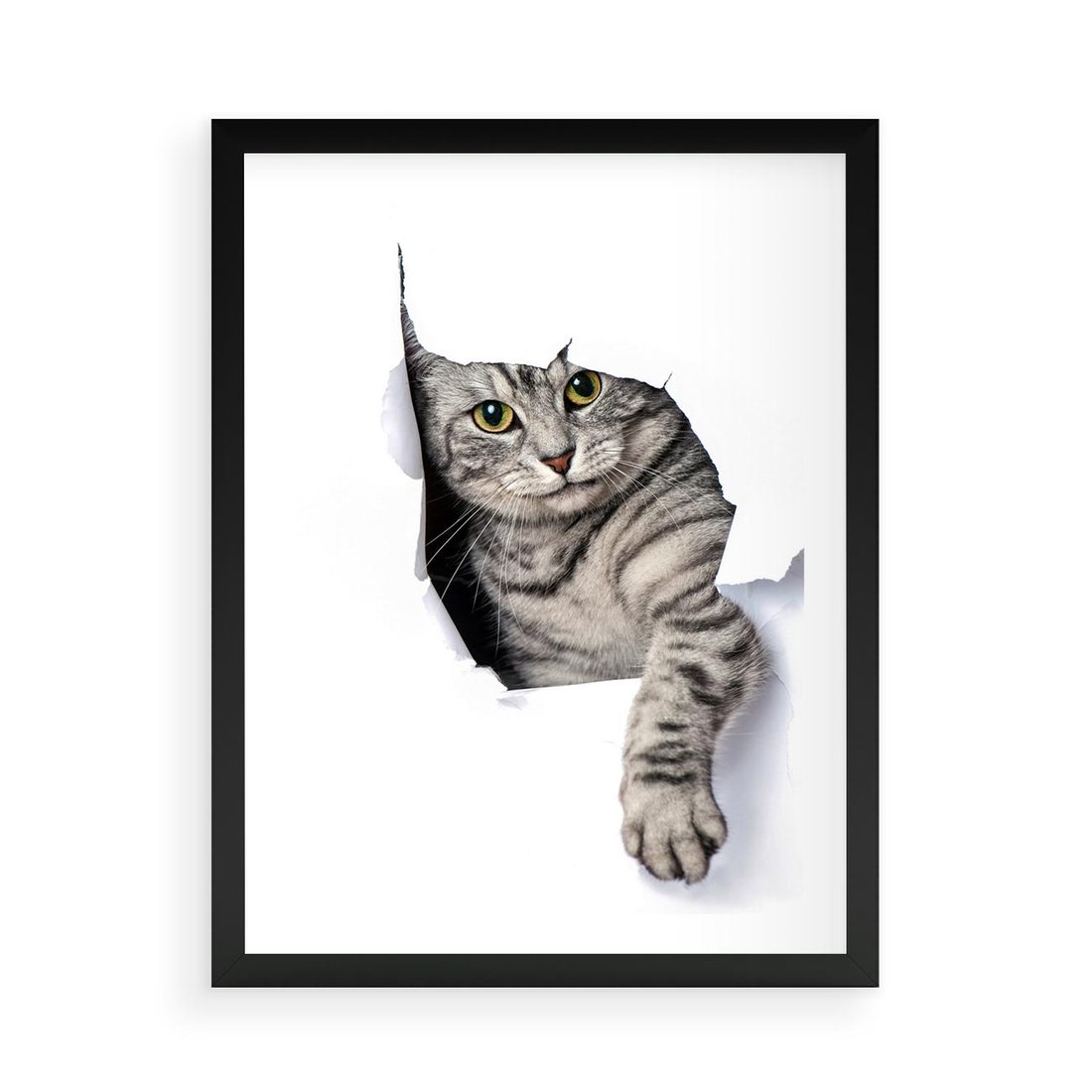 Plakat w ramie 50x70 - Tajemniczy kot i jego świat - kot, dziura - rama czarna