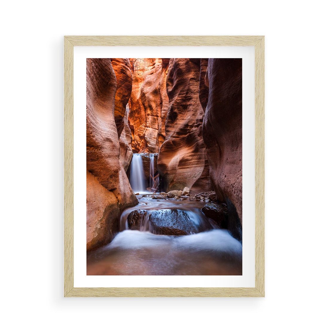 Plakat w ramie 50x70 - Tajemniczy świat jaskini i wodospadu - jaskinia, wodospad - rama drewno