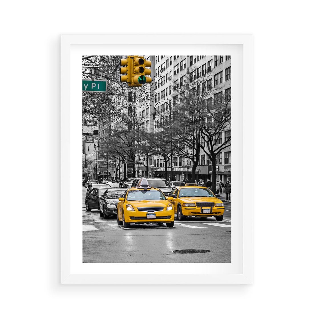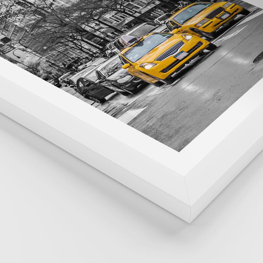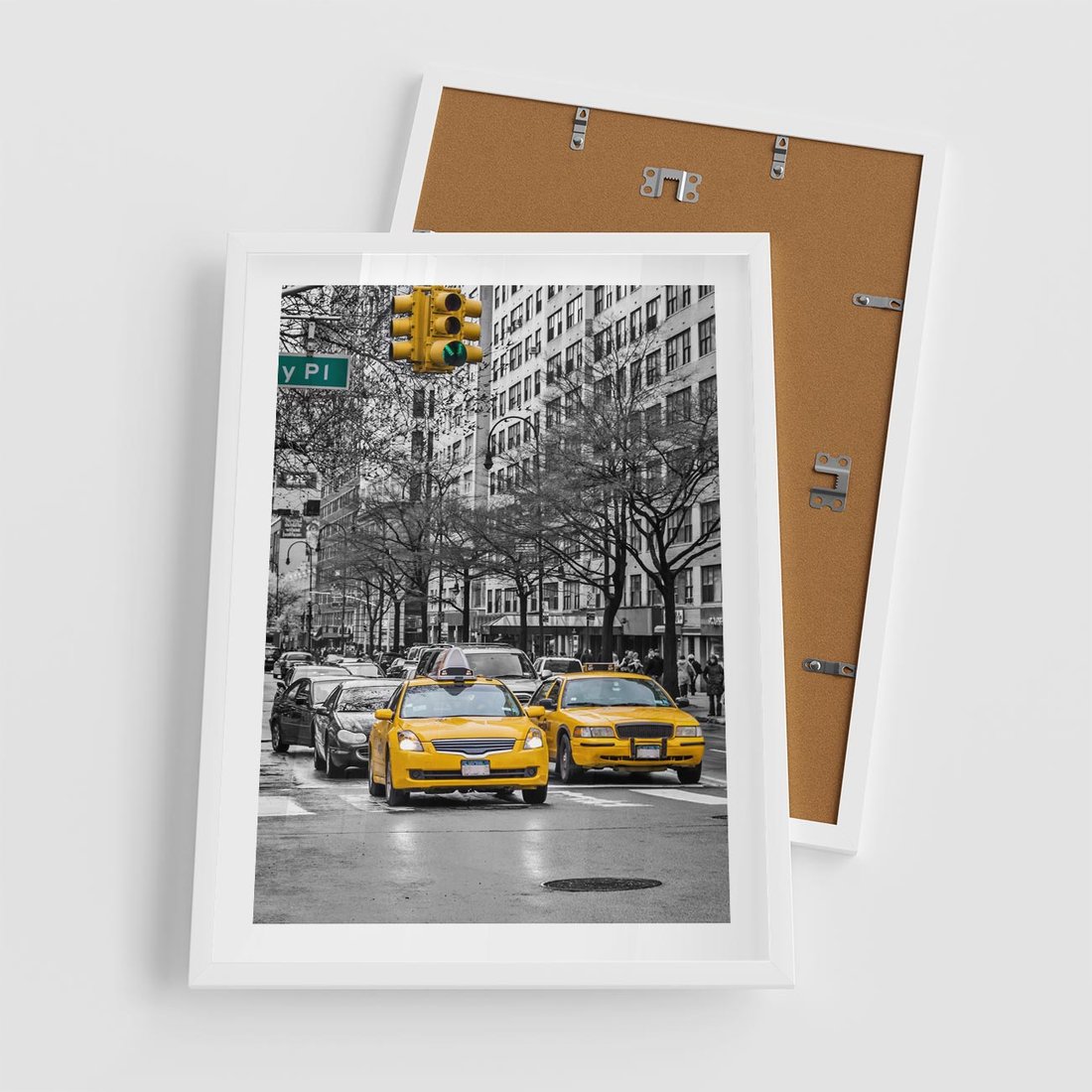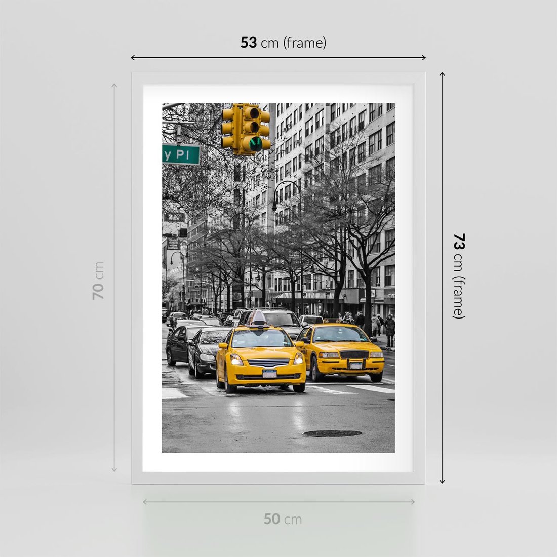 Plakat w ramie 50x70 - Taksówki w Nowym Jorku - taksówki, Nowy Jork - rama biała