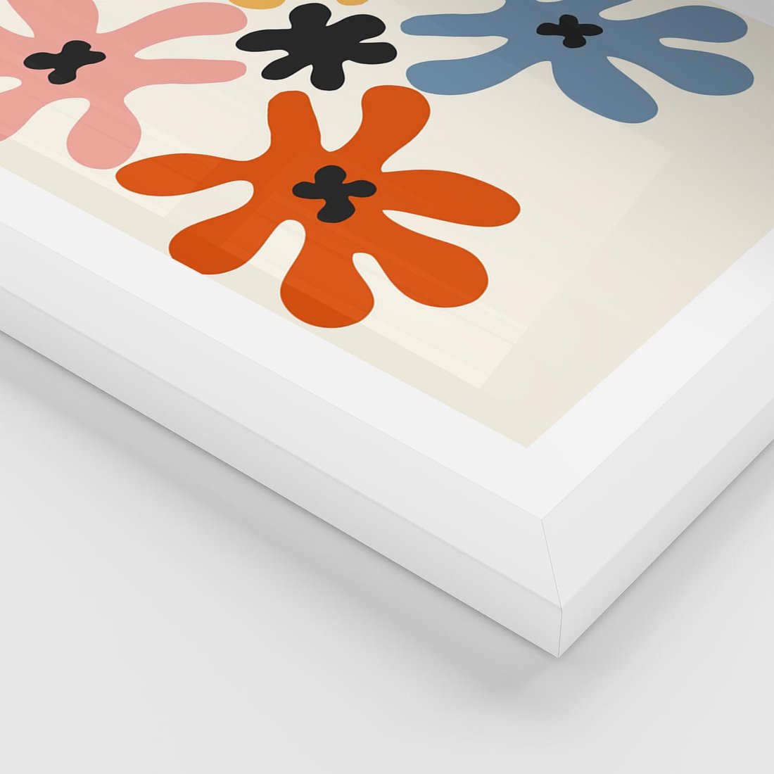 Plakat w ramie 50x70 - Taniec Akwareli - abstrakcyjne wielokolorowe kwiaty, minimalizm - rama biała