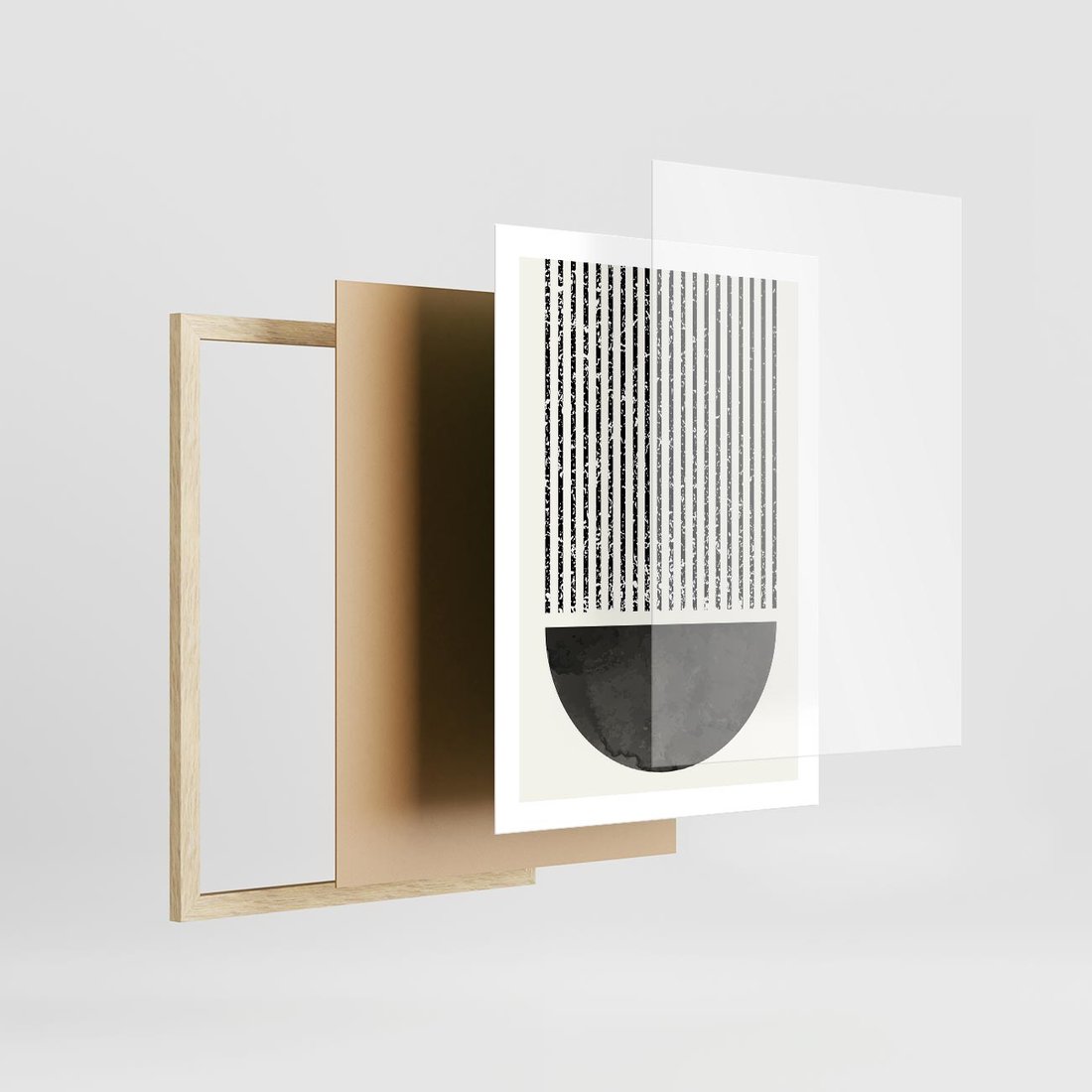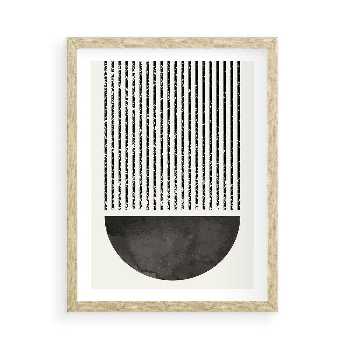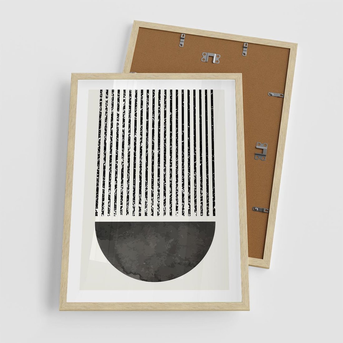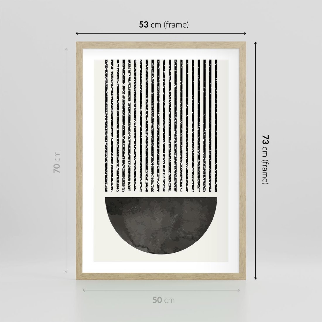 Plakat w ramie 50x70 - Taniec Impulsów - abstrakcyjne czarno białe formy, minimalizm - rama drewno