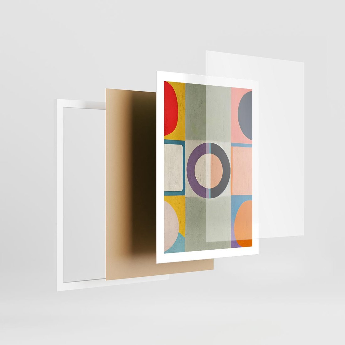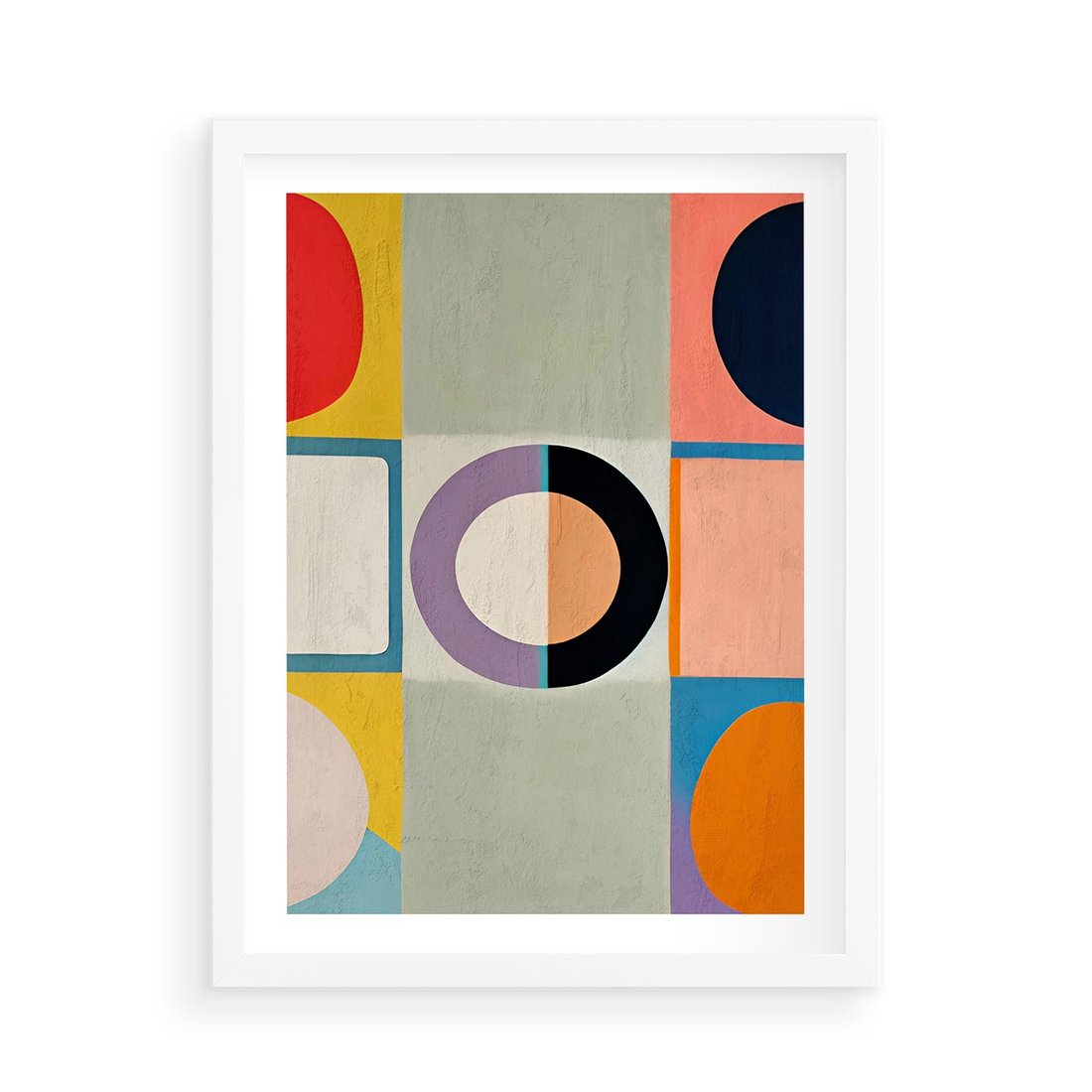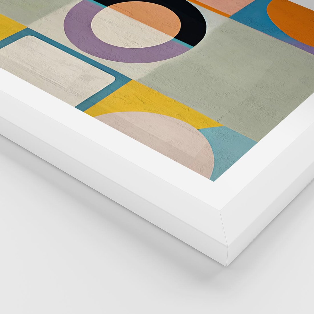 Plakat w ramie 50x70 - Taniec Kształtów Emocji - abstrakcyjne geometryczne kształty, olejny obraz - rama biała